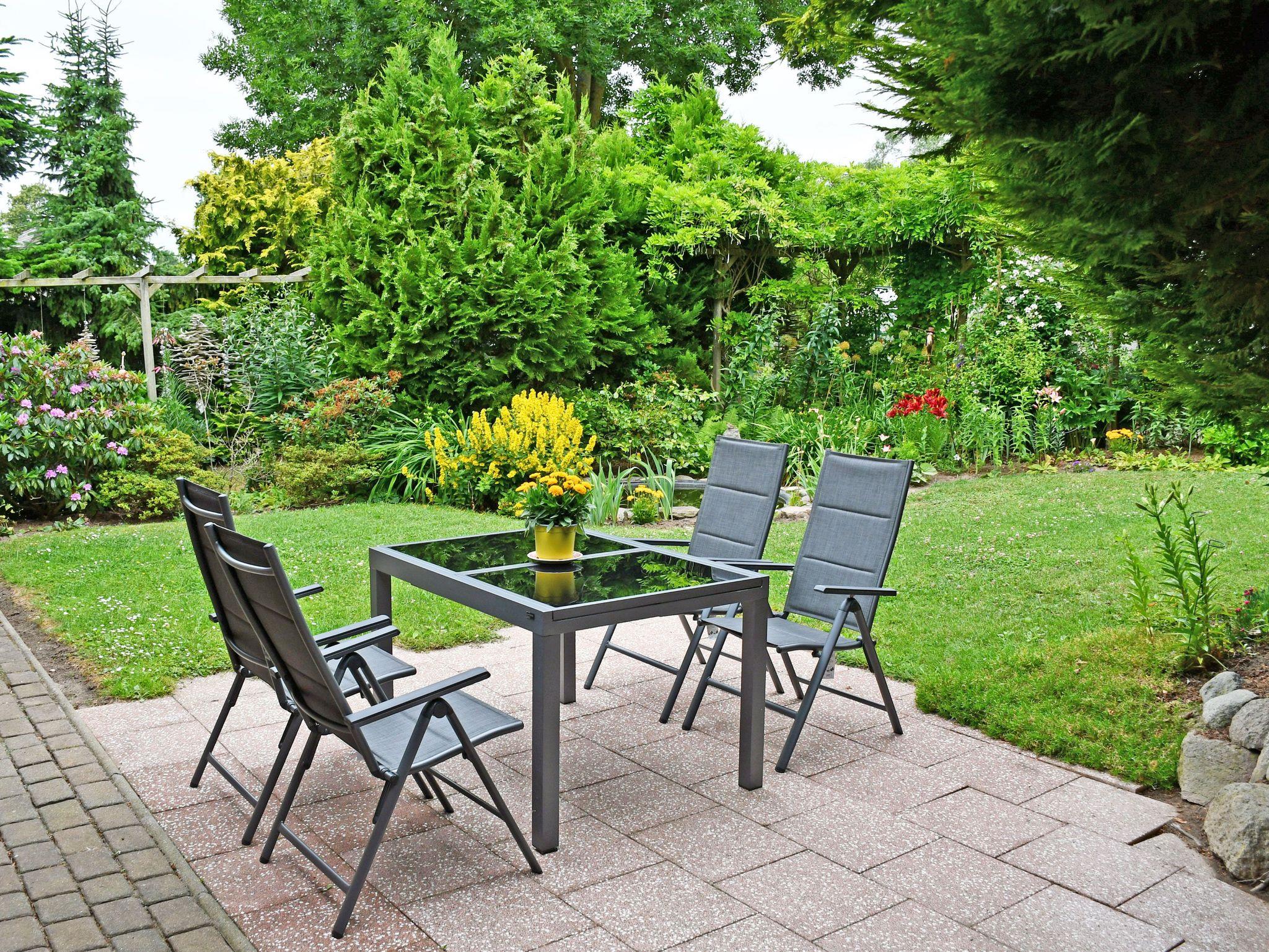 Im Garten können Gäste dieser Ferienwohnung eine schöne Sonnenterrasse mit Gartenmöbeln und Grillmöglichkeit nutzen.