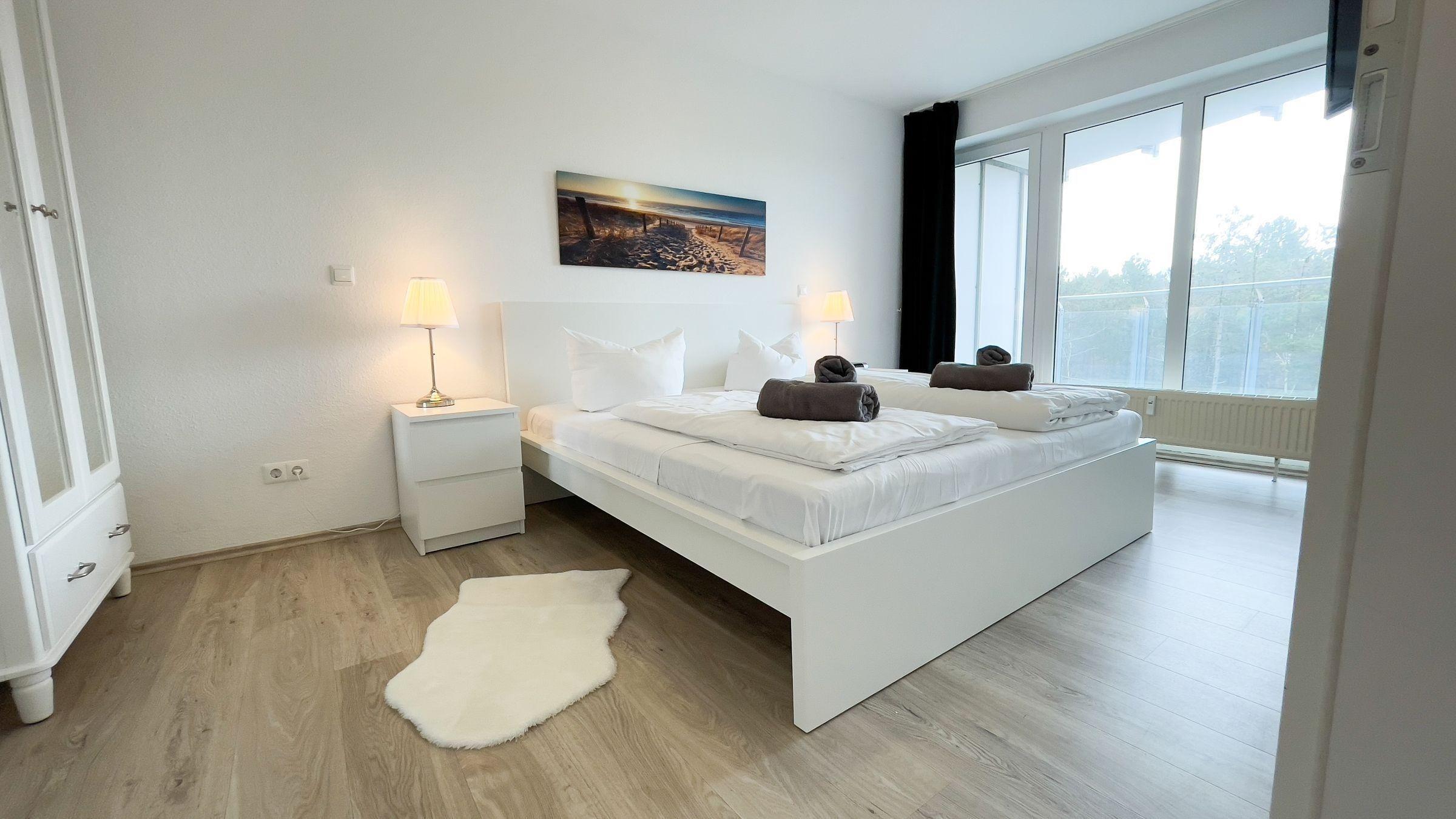 Die helle und gemütliche Ferienwohnung in Cuxhaven-Sahlenburg befindet sich im 1. Obergeschoss und bietet Platz für bis zu 4 Personen. Der separate Schlafbereich ist mit einem komfortablen Doppelbett ausgestattet, während im Wohnzimmer eine Schlafcouch für zwei weitere Gäste zur Verfügung steht. Die moderne, vollausgestattete Küchenzeile mit Geschirrspüler ermöglicht die Zubereitung leckerer Mahlzeiten. Im Badezimmer befindet sich eine ebenerdige, begehbare Dusche. Eine Waschmaschinen-/Trocknerkombination sorgt für zusätzlichen Komfort. Der möblierte Balkon bietet einen Blick ins Grüne und lädt zum Entspannen ein. Ein Fahrradkeller ist ebenfalls vorhanden und steht den Gästen zur Verfügung. Die Ferienwohnung liegt nur etwa 200 Meter vom Sandstrand entfernt und ist somit ideal für einen erholsamen Aufenthalt an der Nordsee.