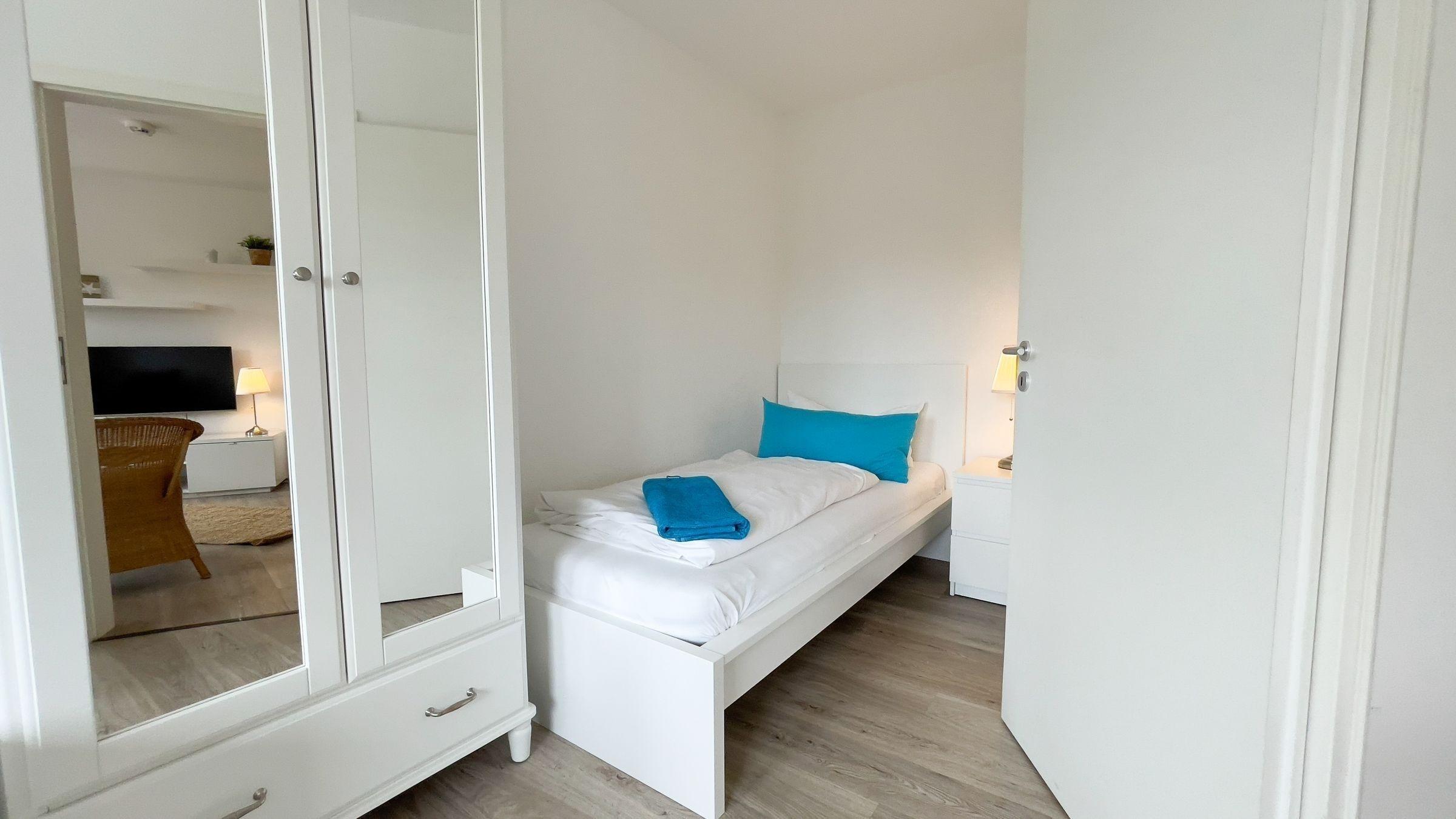 Die barrierefreie Ferienwohnung A4.3 im Haus Nordseebrandung bietet Platz für bis zu 7 Personen und besticht durch ihren modernen, freundlichen Stil. Auf 69 qm verfügt die Wohnung über ein großzügig geschnittenes Wohnzimmer mit Essbereich und einem gemütlichen Schlafsofa. Die voll ausgestattete offene Küche lädt zu gemeinsamen Kochabenden ein. Das große Schlafzimmer enthält ein Doppelbett sowie einen Kleiderschrank. Im zweiten Schlafzimmer erwarten die Gäste ein Einzelbett und ein ausziehbares Tagesbett. Die Wohnung liegt in der 4. Etage, bequem erreichbar durch einen Fahrstuhl. Für den Wäschekomfort steht eine Waschmaschinen-/Trocknerkombination in der Wohnung zur Verfügung. Gäste können zudem ihre Fahrräder im Fahrradkeller abstellen. Die Ferienwohnung ist nur ca. 200 Meter vom Sahlenburger Sandstrand entfernt, der zu erholsamen Tagen am Meer einlädt.