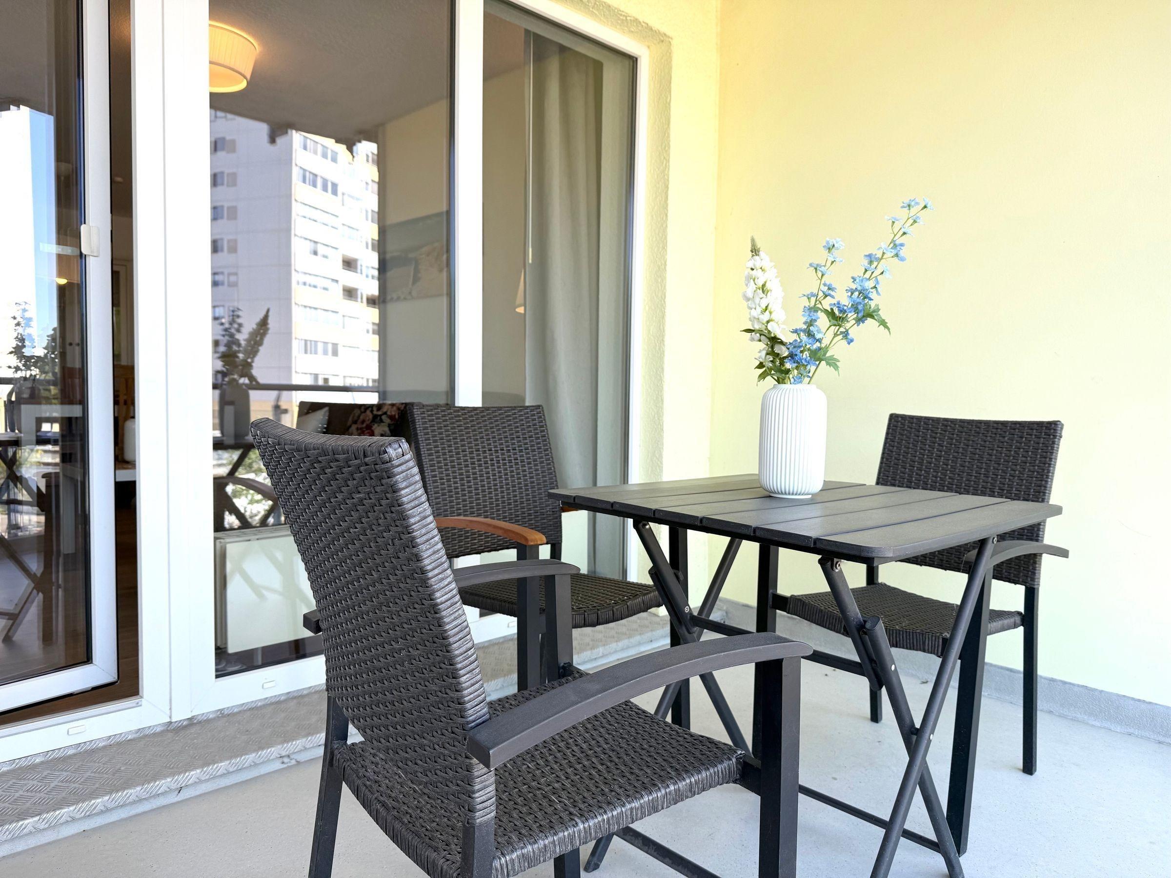 Die zwei Balkone ermöglichen entspannte Momente und eine Aussicht auf die umliegende Natur. Eine Waschmaschinen-/Trocknerkombination ist ebenfalls vorhanden. Fahrräder können im gemeinschaftlich nutzbaren Fahrradkeller sicher abgestellt werden.
