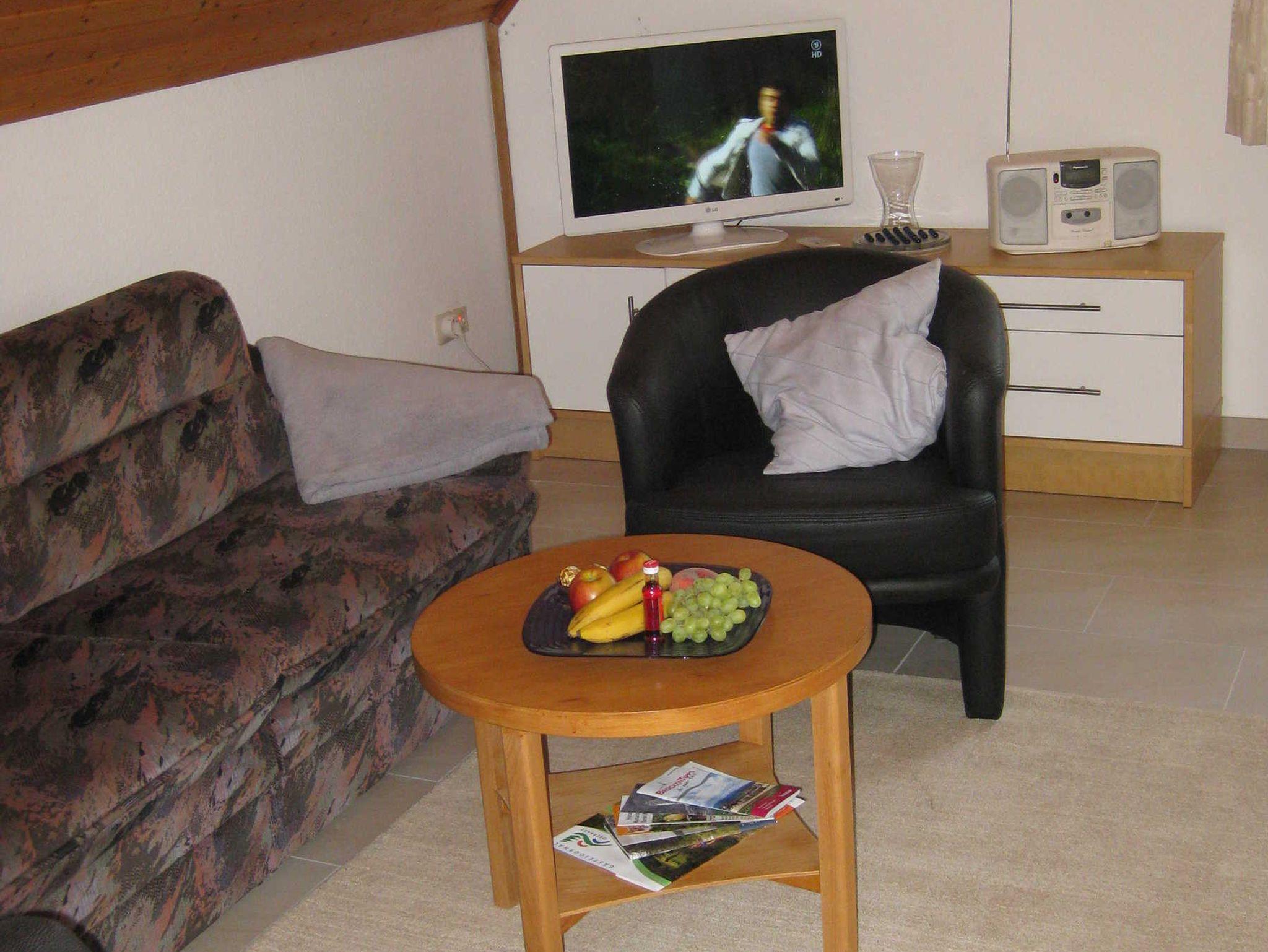 Die Ferienwohnung A der Appartements am Hexenstieg in St. Andreasberg im Oberharz liegt im Dachgeschoss des Hauses und bietet auf 40 qm Wohnfläche Platz für zu 3 Personen. Die Ferienwohnung besteht aus Wohnzimmer, Schlafzimmer, Küche und Duschbad. Das Wohnzimmer ist ausgestattet mit Sitzecke, Essplatz, Schlafsofa, Flachbild-TV, CD-Player und Telefon. Im Schlafzimmer finden sich 2 Einzelbetten und ein Kleiderschrank. Die separate Küche ist ausgestattet mit Kühlschrank und Mikrowelle, das Duschbad ist zweckmäßig eingerichtet.