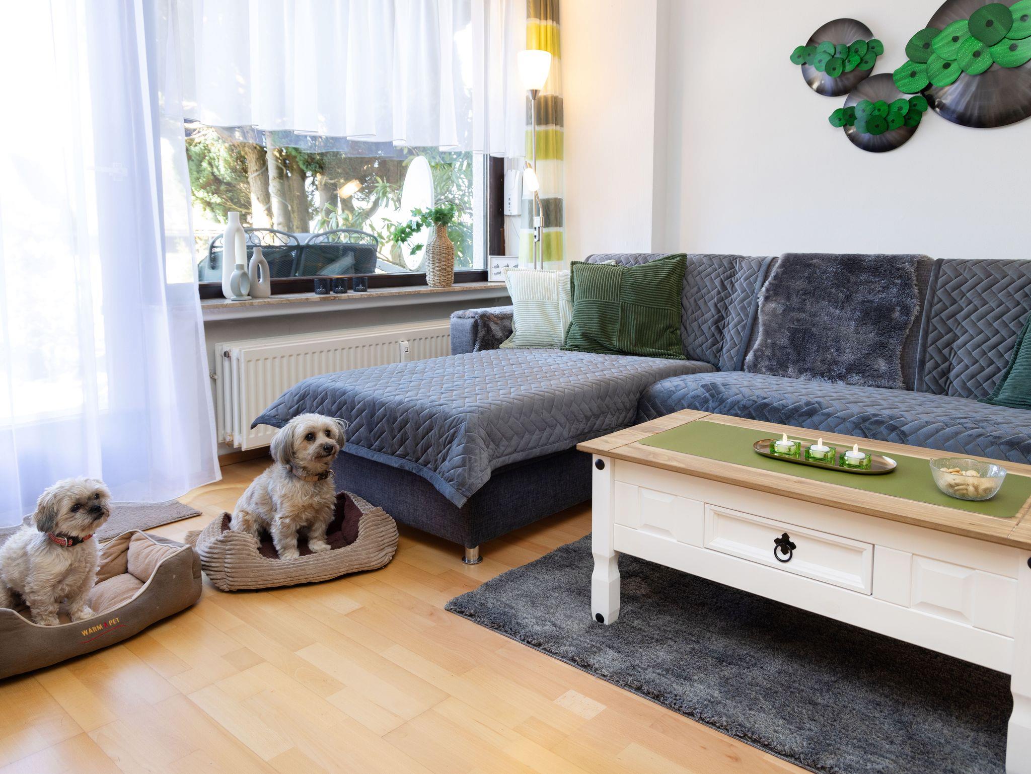 Die Ferienwohnung mit einer Größe von ca. 46qm befindet sich im Gartengeschoss und ist für 2 Gäste ausgerichtet. 1 Hund bis 30Kg ist willkommen! Das Feriendomizil wurde in 05/2025 frisch renoviert und möbliert. Das Bad wurde 2016 teilsaniert. Die Ferienwohnung ist komplett mit WLAN ausgeleuchtet. Der 43 große Smart TV bietet ihnen im Wohnzimmer Streaming - Möglichkeiten über die bekannten Plattformen Netflix, Prime, Joyn usw. Die moderne Wohnung besitzt eine gut ausgestattete Küche mit Geschirrspüler, ein Duschbad und ein Schlafzimmer mit 2x 1x2m großen Einzelbetten inkl. Topper-Auflage. Dort befindet sich ein 2. TV, der mit einer Sat Anlage verbunden ist. Die ca. 41qm große, eingezäunte Terrasse mit einem modernen Gasgrill ist ein Highlight der Ferienwohnung.