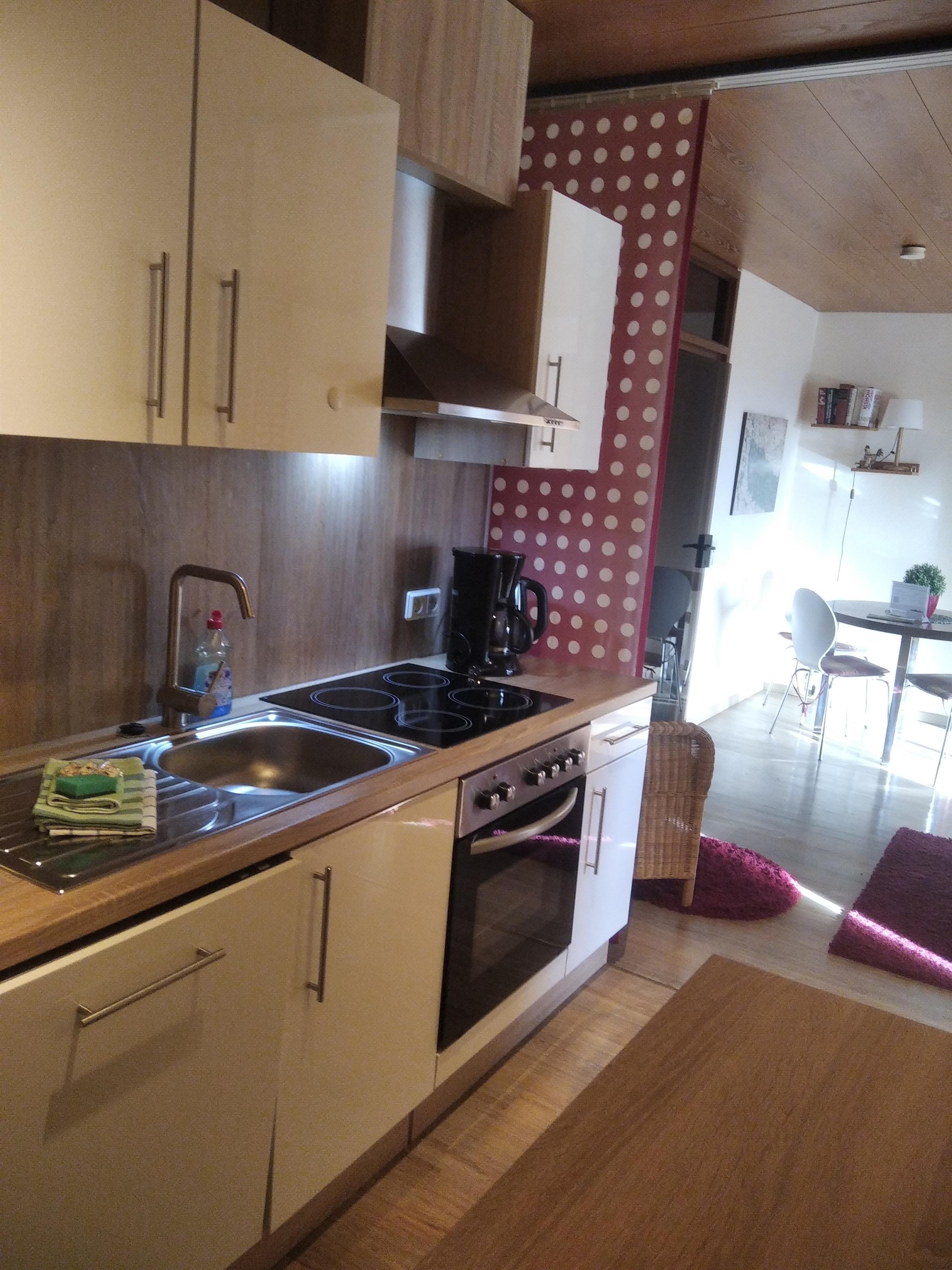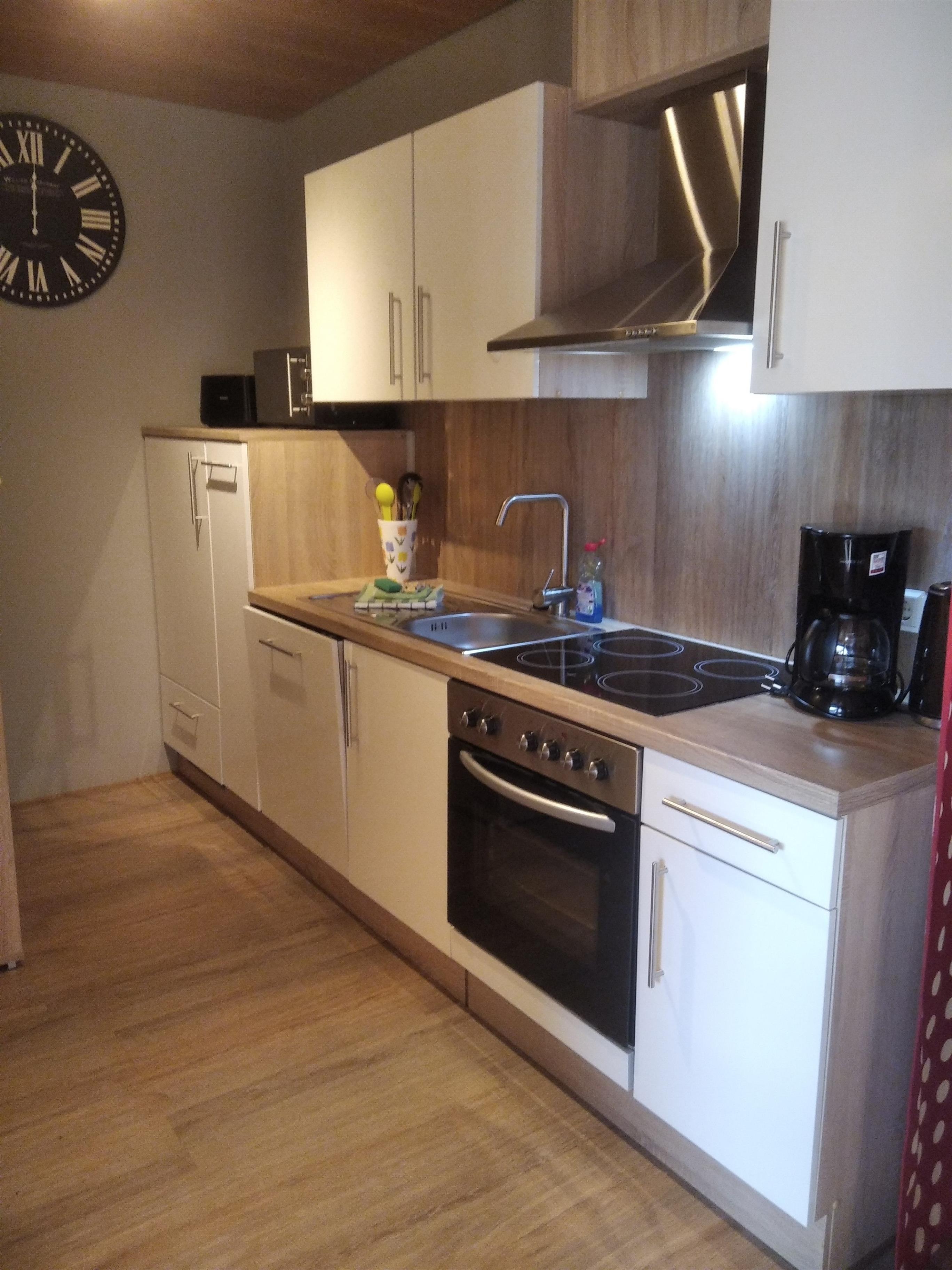 Die neue offene Küche ist gut ausgestattet mit allem, was man für einen Selbstversorgeraufenthalt benötigt.