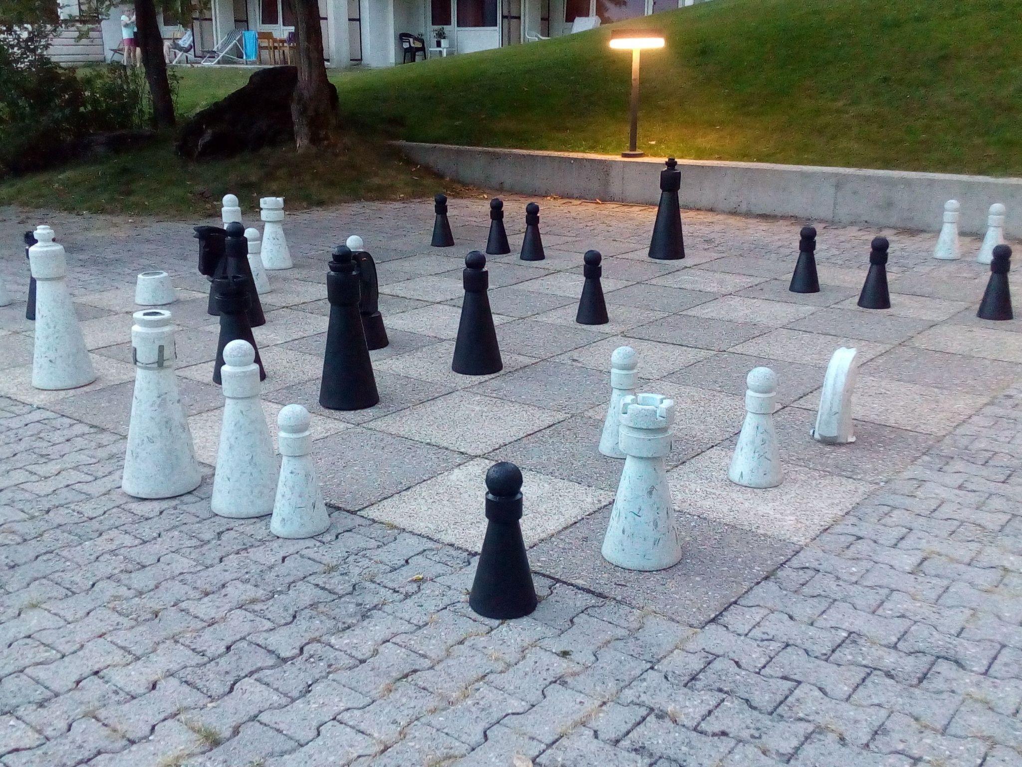 A mini-golf and chess facility as well as a large playground and a barbecue area can be found in the outdoor area.