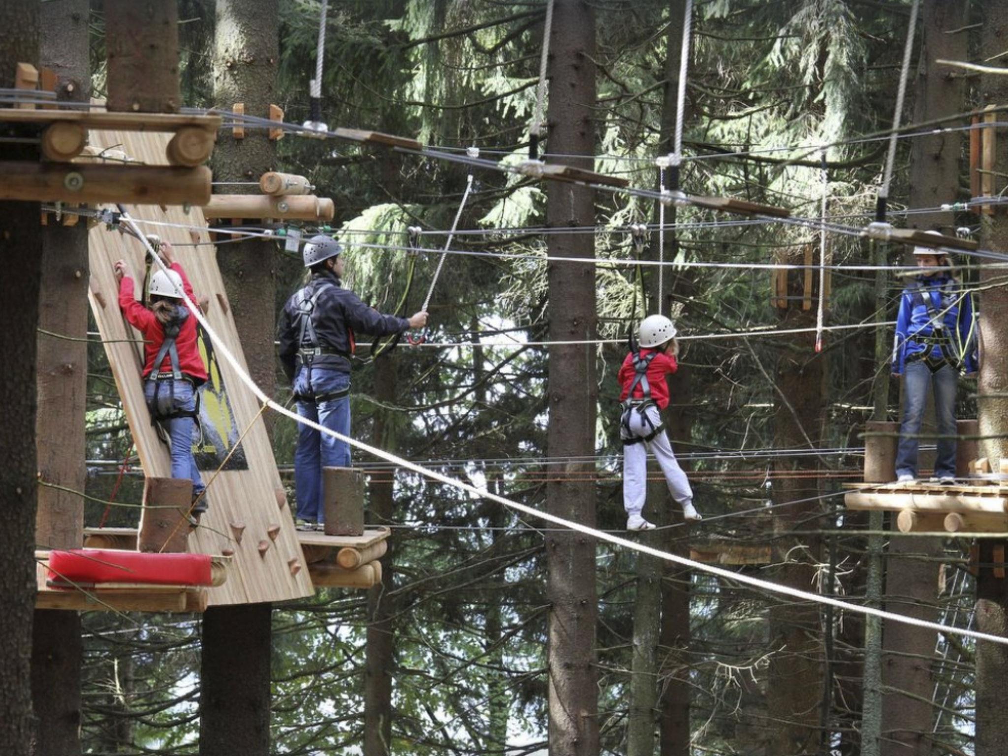 Excursions: Our flat is part of the Predigtstuhl holiday complex, which offers a wide range of leisure activities, and although the complex is somewhat older, it is currently being modernised step by step. The building in which your flat is located has already been renovated, so there is no noise pollution to worry about. The free, large indoor pool with counter-current system and bubble massage loungers, the adjoining modern fitness centre and the sauna area with Finnish sauna, bio-sanarium and infrared cabin have been renovated and are in excellent condition. In summer, a large outdoor pool with a wide slide, on which several children can slide at the same time, provides additional bathing fun, while other attractions at the holiday resort include table tennis tables, an outdoor playground and - for a fee but at a reasonable price - a mini golf course, an electric kart track, a large football hall with several pitches and a 1.300 m² indoor playground with giant slides, trampolines, a large climbing castle, billiards, table football, air hockey, Lego building site and a childcare service. The surrounding mountains and forests invite you to go on long hikes and cycle tours in beautiful, unspoilt nature. In Sankt Englmar there is a spa park with a large children's playground, an animal enclosure and a very clean natural swimming lake. The spectacular forest treetop path, a mountain rollercoaster and a water playground are just a few minutes away. On rainy days, you can visit the "xperium", a great experimental museum (not only) for children, which is within walking distance. In the surrounding area there is a canoe hire centre, a former underground silver mine and a glass-blowing workshop where you can make your own glass balls to take home with you. In the cold season, Sankt Englmar is transformed into a winter sports paradise: There are numerous cross-country ski trails, lifts and ski slopes in the immediate vicinity (Pröller Skidereieck, Predigtstuhl Arena, etc.). Modern snow-making facilities ensure good skiing conditions regardless of the weather. Thanks to floodlights, skiing fun is also possible at night. There are two ski schools with hire services directly on site. The prices for ski passes etc. are very moderate compared to many other winter sports resorts. In the family-friendly ski resort of Sankt Englmar, more consideration is also given to children and there are fewer "speeders" on the slopes than elsewhere. Another special feature is the toboggan lift in the spa gardens of Sankt Englmar: here, visitors of all ages can be pulled up in the comfort of a lift and then whizz down the slope. Horse-drawn sleigh rides and winter hikes through the snow-covered Bavarian Forest are also a wonderful experience.place description :Sankt Englmar in winter offers everything that makes a winter holiday.there are many opportunities for skiers and snowboarders in the Sankt Englmar holiday region. A large number of lifts and slopes of varying degrees of difficulty, a snowboard fun park, floodlit pistes almost every evening, ski and snowboard lessons and wonderful, well-prepared cross-country ski trails. There are also toboggan runs, a natural ice rink in the spa gardens and the opportunity to go snowshoeing and, of course, winter hiking. For winter hikers, there are more than 50 kilometres of cleared and rolled winter hiking trails, so you can enjoy the magical winter forest on guided hikes or on your own on foot. If you would like to try a slightly more unusual sport on holiday, the snowboard school also offers beginners' courses in snowkiting and for a more leisurely tour through the snow-covered landscape, you can take a ride in a horse-drawn sleigh.enjoy the wonderful landscape in summer tooSankt Englmar is also worth a visit in summer. The location in the heart of the Bavarian Forest and in the middle of unspoilt nature means that our flat in St. Englmar is a wonderful starting point for extensive hikes through the Bavarian Forest. From our accommodation in St. Englmar, it's not far to the start of one of the most beautiful hiking areas in Germany. Around 125 kilometres of well-signposted hiking trails lead through the region and also connect Sankt Englmar to the various long-distance hiking trails such as the Baierweg or the Goldsteig. The four "thousand metre" mountain peaks, the Pröller, the Hirschenstein, the Knogl and the Predigtstuhl offer magnificent views across the Bavarian Forest. The Wald-Wipfel-Weg in Maibrunn is also an experience that hikers with a head for heights should not miss out on. At a height of 30 metres and a length of 350 metres, the wooden path leads through the treetops with wonderful views and also offers unique information about the local flora and fauna on a nature trail. Holidays in Sankt Englmar are also worthwhile for cyclists. From leisurely circular tours, which are also ideal for families with children, to challenging mountain bike trails, the region offers the whole spectrum. Sankt Englmar, which boasts the largest mountain bike network in the Bavarian Forest with 300 kilometres of interconnected trails, is particularly popular with mountain bikers. Sankt Englmar and the surrounding area also offer relaxing treatmentsIf you want to relax even further after a wonderful walk, there are many opportunities for wellness or spa treatments in Sankt Englmar. The offer ranges from classic cures to Ayurveda, massages and Kneipp cures. Wonderful outdoor pools, bathing lakes and the natural bathing pond in the spa gardens also invite you to enjoy a relaxing swim. Tourist tax to be paid on site (more information in the arrival information)