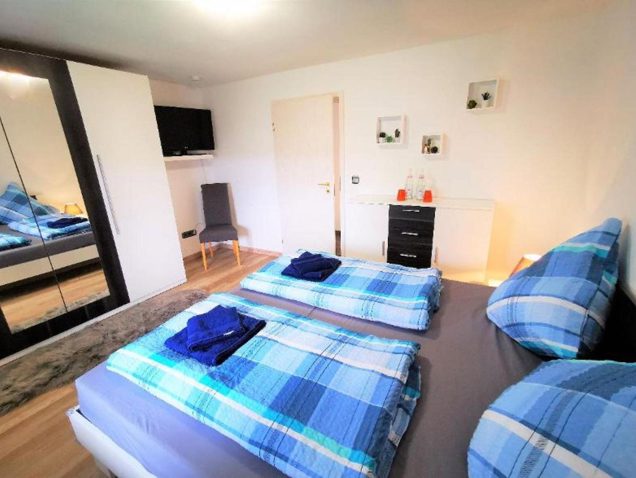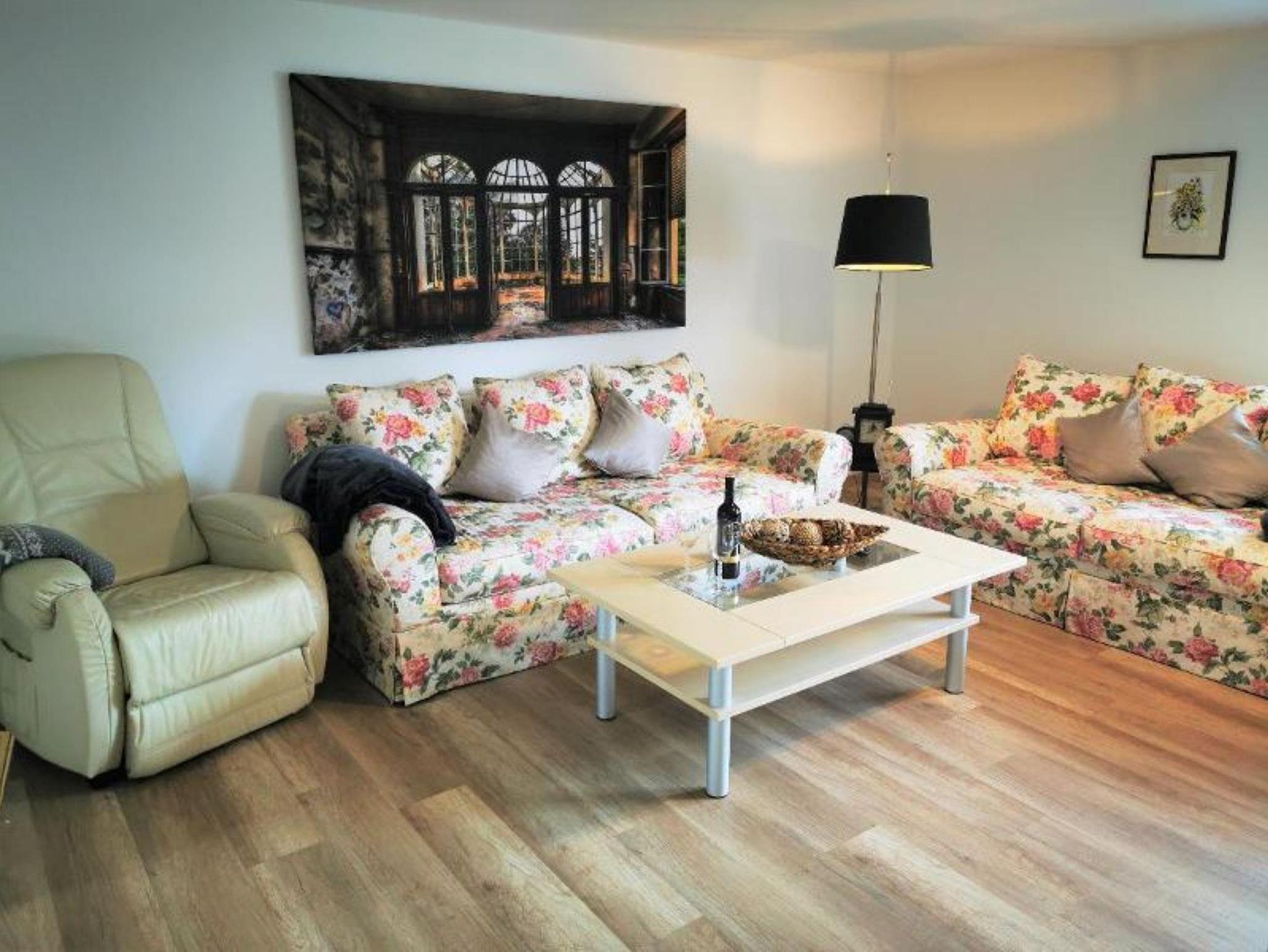 Unsere Ferienwohnung mit 100 m² Wohnfläche im 1. Stock bietet Platz für 2-4 Personen. Das gemütliche Wohnzimmer mit Schlafsofa und Flachbild-TV lädt zum Verweilen ein. Die komplett ausgestattete Küche mit Geschirrspüler, Kühlschrank incl. Gefrierfach, Herd, Backofen, Mikrowelle, Wasserkocher, Toaster und Kaffeemaschine lässt keine Wünsche offen. Die Ferienwohnung verfügt über zwei Schlafzimmer mit je einem Doppelbett. Das geräumige Badezimmer mit Wellnessdusche (niedrige Duschwanne), Badewanne, Föhn, Handtuchtrockner und WC rundet das Gesamtbild ab. Zusätzlich steht Ihnen noch ein separates WC zur Verfügung. Vor allem im Sommer können Sie entspannte Grillabende in unserem Garten verbringen. Haustiere sind erlaubt (max. 2 kleine Hunde, Hunde über 35 cm Schulterhöhe sind auf 1 Tier beschränkt). Das WLAN und den Parkplatz vor dem Haus können Sie kostenfrei nutzen.