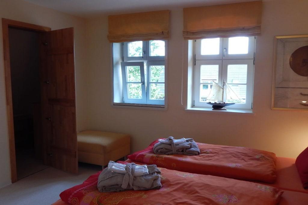 Herzlich willkommen in dieser luxuriösen Ferienwohnung! Die herrlich luxuriöse Ausstattung der Ferienwohnung lässt wirklich keine Wünsche offen. Exklusive Möbel, Accessoires und allerlei Annehmlichkeiten sind hier wirklich stilvoll aufeinander abgestimmt. Ein hochwertiges Badezimmer sowie ein zusätzliches Gäste-WC in Granitausstattung sind auch vorhanden. Das Hauptbadezimmer ist mit Dusche, Doppelwaschbecken, Handtuchwärmer mit Handtüchern und Bademänteln ausgestattet. Klimatisierte Schlafzimmer. Die geräumige Küche hat alles was man zu einem perfekten Kochen benötigt. Selbstverständlich befindet sich im gemütlichen Wohnzimmer Telefon, TV und DVD-Player mit Stereoanlage. Der eigene überdachte Balkon lädt zum Verweilen ein. Das gesamte Appartement ist ebenerdig mit Fußbodenheizung. Genießen sie die Ruhe in unserem Wellnessbereich mit finnischer Sauna und Wärmekabine im EG des Hauses.