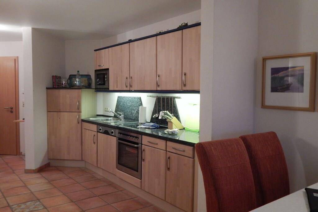 Die luxuriöse Ausstattung der Ferienwohnung lässt keine Wünsche offen. Exklusive Möbel, Accessoires und allerlei Annehmlichkeiten sind stilvoll aufeinander abgestimmt. Im hochwertigen Bad in Granitausstattung finden sie eine ebenerdige Dusche sowie, einen Handtuchwärmer mit Handtüchern und Bademänteln vor. Das Schlafzimmer verfügt über ein 180 X 200 großes Boxspringbett. Die geräumige Küche ist mit allem ausgestattet, was das Kochen zum Vergnügen macht. Im gemütlichen Wohnzimmer befindet sich selbstverständlich , TV und DVD-Player mit Stereoanlage. Die eigene Terrasse lädt zum Verweilen ein. Die gesamte Ferienwohnung verfügt über eine Fußbodenheizung und W-LAN. Genießen Sie die Ruhe in unserer Sauna im Außen-Gartenbereich.