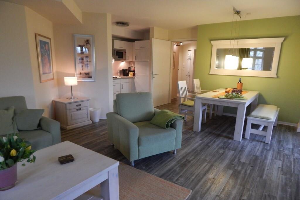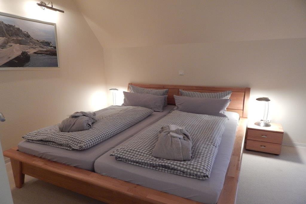 Luxuriöse Ausstattung, exklusive Möbel und allerlei Annehmlichkeiten stilvoll aufeinander abgestimmt lassen keine Wünsche offen. So erwartet SIe diese herrliche Ferienwohnung! Ein hochwertiges Bad in Granitausstattung eine Dusche mit Sitzgelegenheit, Handtuchwärmer, Handtüchern und Bademänteln.Ausserdem hat die Wohnung noch ein Gäste-WC. Das Schlafzimmer ist klimatisiert. Die Küche ist hat alles was man zum kreativen Kochen benötigt. Selbstverständlich befinden sich im gemütlichen Wohnzimmer Telefon und DVD-Player mit Stereoanlage. Der eigene überdachte Balkon lädt zum Verweilen ein. Die gesamte Ferienwohnung verfügt über eine Fußbodenheizung. Genießen sie die Ruhe in unserem Wellnessbereich mit finnischer Sauna und Wärmekabine im EG des Hauses.