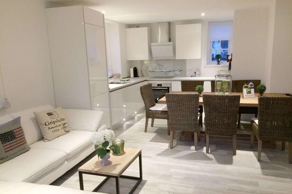 Vores hyggelige strandhytte med 4 soveværelser, to badeværelser, sauna og pejs. 2 soveværelser med dobbeltsenge, 2 badeværelser, 2 enkeltsenge og 2 yndige alkover (90x200 cm). Topmoderne designerkøkken. Ved siden af den lyse stue og spisestue med pejs. Elegant vintagegulv, lædersofa... Plus teak havemøbler og en strandstol. Og beliggenheden! Simpelthen en drømmebeliggenhed - kun en kort gåtur til stranden. Lyslederforbindelse. Andre ejendomme: - Hytte til 2 personer https://www.traum-ferienwohnungen.de/587025.htm