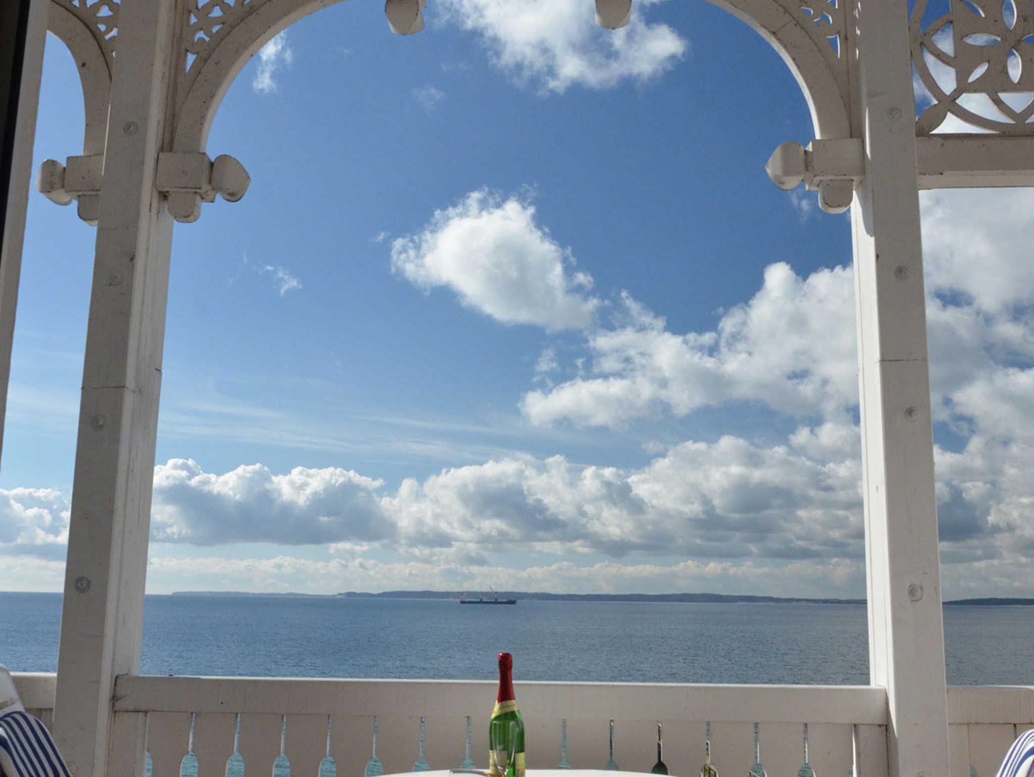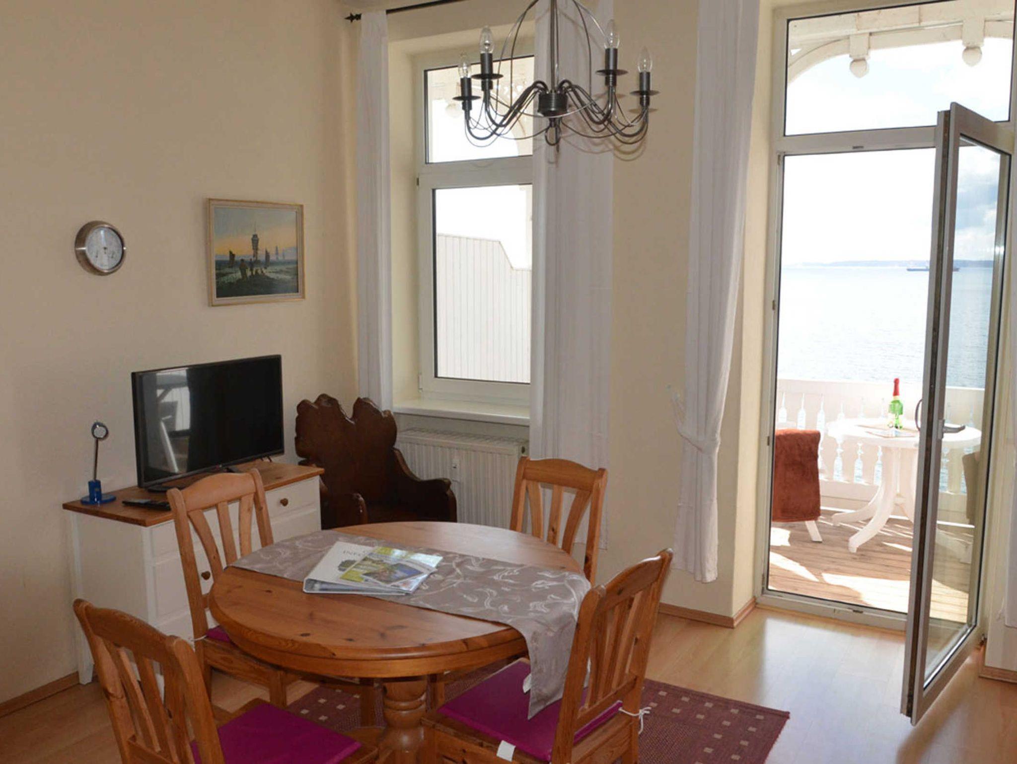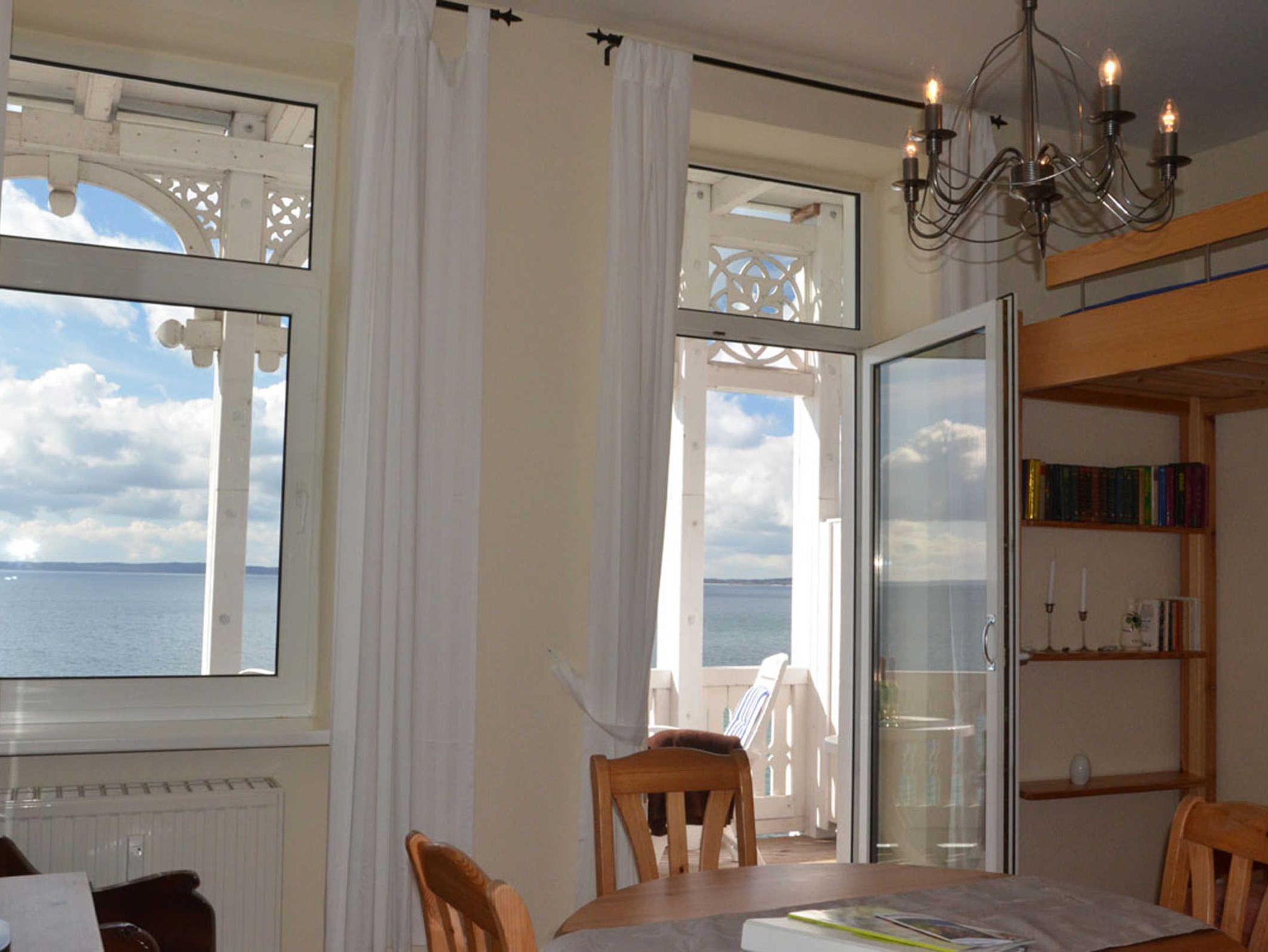Sie genießen einen wunderschönen Seeblick, sehen Fährschiffe und Fischerboote vorbeiziehen und haben einen Weitblick bis hin zu den Ostseebädern Binz und Sellin.
