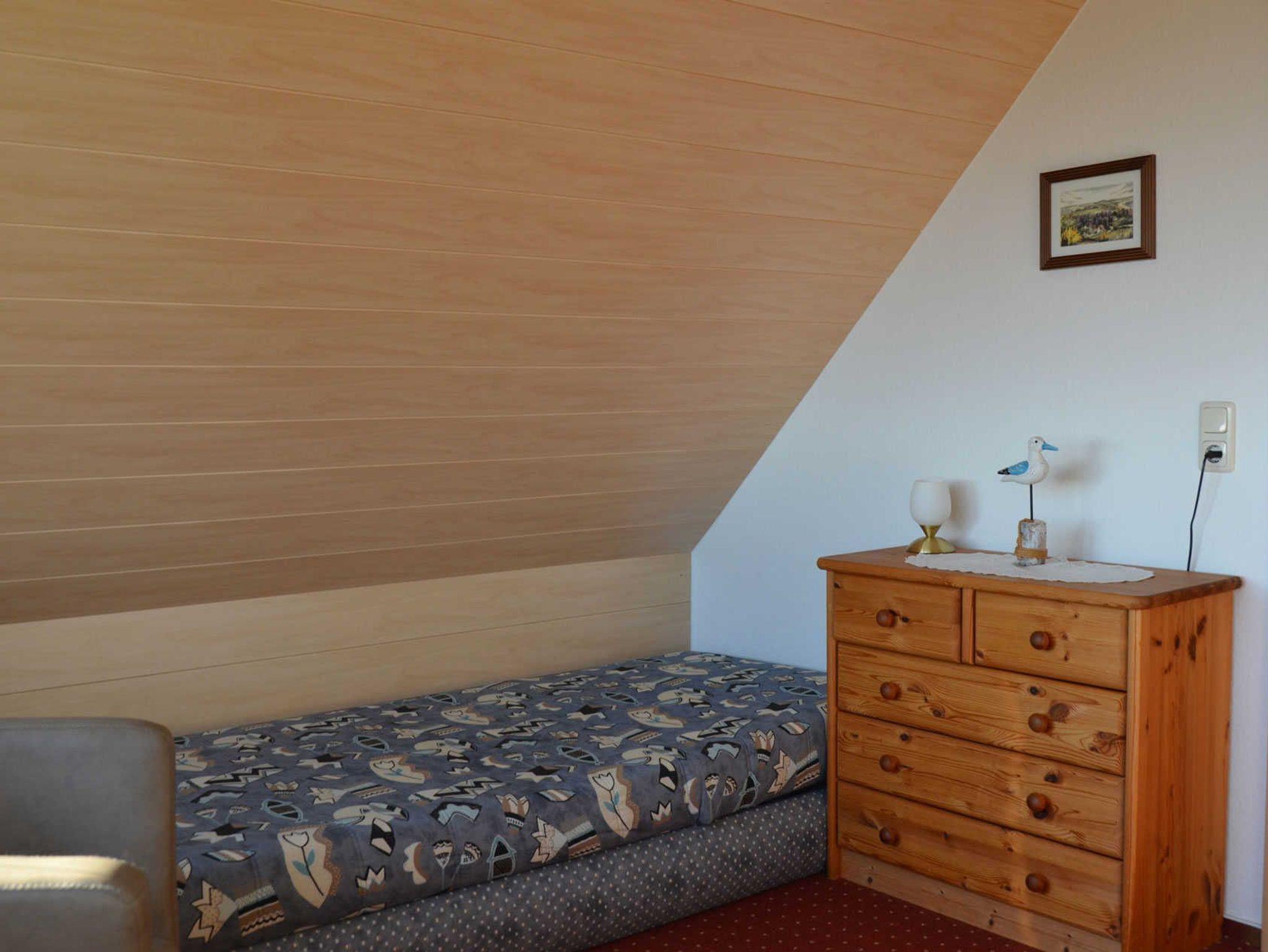 Das Ferienhaus befindet sich auf dem Gartengrundstück des Vermieters am Waldrand der Stubnitz. Es ist 48 m² groß und bietet einen herrlichem Blick über die Stadt Sassnitz und auf die Ostsee. Das Ferienhaus verfügt über 2 Schlafräume. Diese befindet sich in der 1. Etage. Das erste Schlafzimmer ist ein Durchgangszimmer und verfügt über ein Doppelbett. Das hintere Schlafzimmer ist mit 2 Liegen ausgestattet. Im Erdgeschoß ist der Wohnraum mit offener Küche untergebracht. Ausstattung: Du/WC, Radio, TV, W-LAN, Kaffeemaschine, Mikrowelle, Geschirrspüler, Kühlschrank, Toaster, Terrasse mit Sonnenmöbel, Grillmöglichkeit, PKW-Stellplatz, Handtücher und Bettwäsche sind 1 x im Preis enthalten.