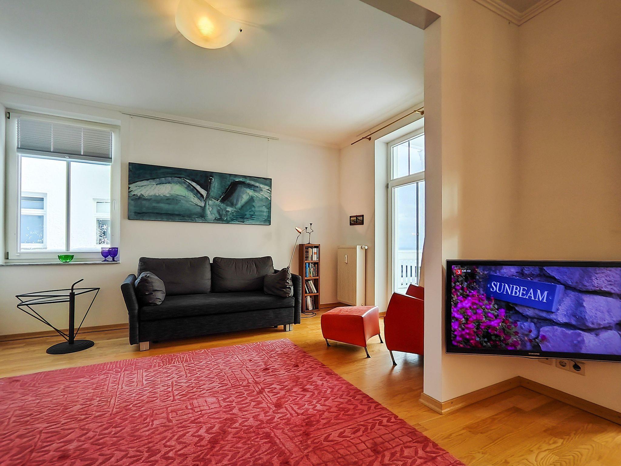 Die großzügige Ferienwohnung befindet sich in einer beliebten und sehr ruhigen Lage von Sassnitz mit nur 5 Minuten Gehweg bis zur historischen Altstadt und bis zur Ostsee entfernt. Der Hafen befindet sich in einer Entfernung von 200 m. Unweit entfernt lädt der Nationalpark Jasmund, der für seine Kreidefelsen (ca. 500 m) und den Königsstuhl bekannt ist, mit seinen weitläufigen Buchenwäldern zu Spaziergängen, zum Wandern oder zu Radtouren ein.