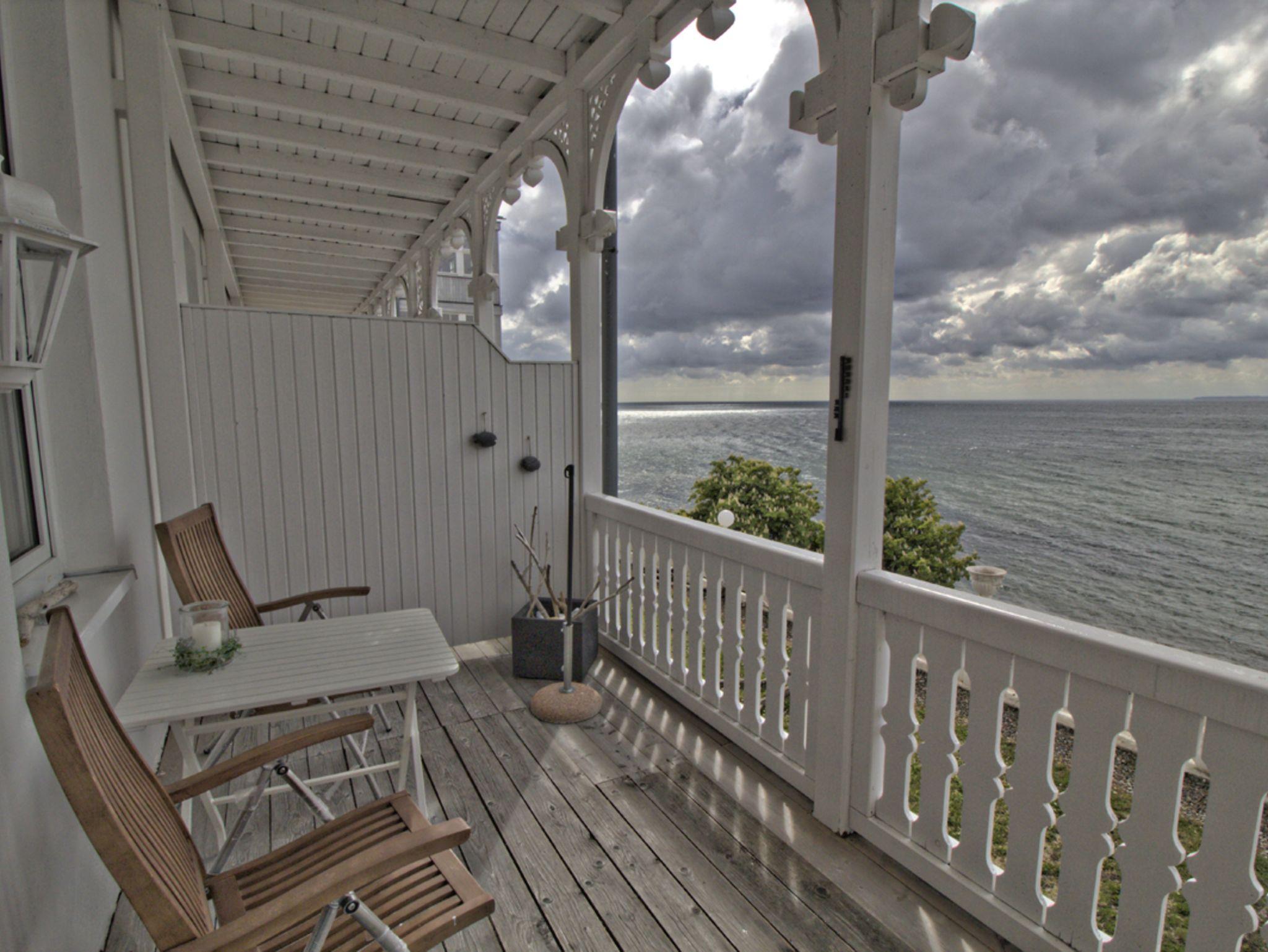 Sie genießen einen wunderschönen Seeblick, sehen Fährschiffe und Fischerboote vorbeiziehen und haben einen Weitblick bis hin zu den Ostseebädern Binz und Sellin.