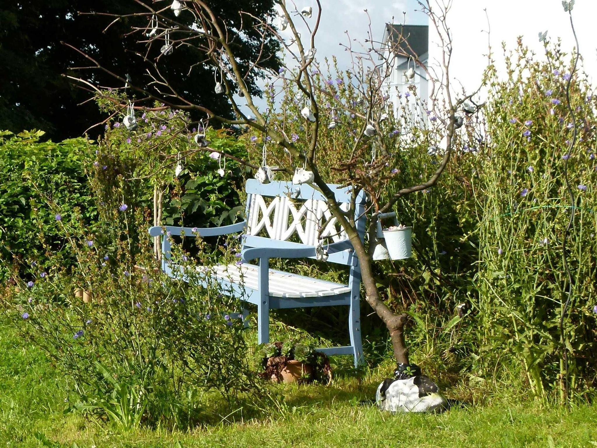 In unserem wirklich großen Garten warten ( - z. B. nach einer Wanderung durch den nur wenige Minuten entfernten Nationalpark, oder einem Hafen-Spaziergang, oder....) die für die Ostsee typischen Strandkörbe auf Sie, ebenso wie eine romantische Liegebank, ein großer Grillplatz.