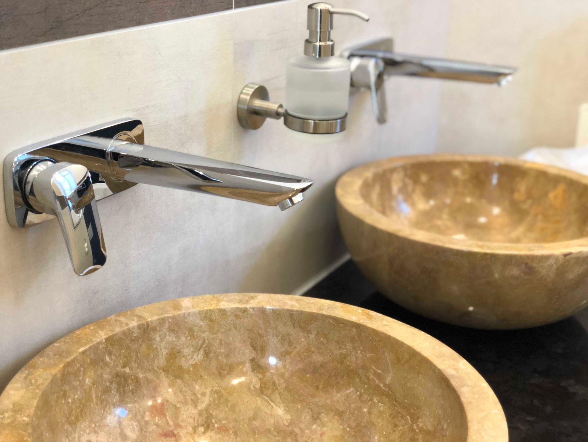 Die neuen Räume sind in warmen Sandtönen gehalten und die gehobene Einrichtung verstärkt das Wohlbefinden, welches das kleine Haus mit der langen Geschichte unseren Gästen schon beim Betreten vermitteln kann. Die originalen und aufwendig aufgearbeiteten Balken und Rähmen erinnern noch im Ansatz an das Baujahr von 1891. Ausgewählte Bilder und Strandgut-Kunstobjekte vervollständigen das gelungene Gesamtkonzept und passen so hervorragend zu unserer Galerie und Villa Am Steinbach direkt gegenüber.