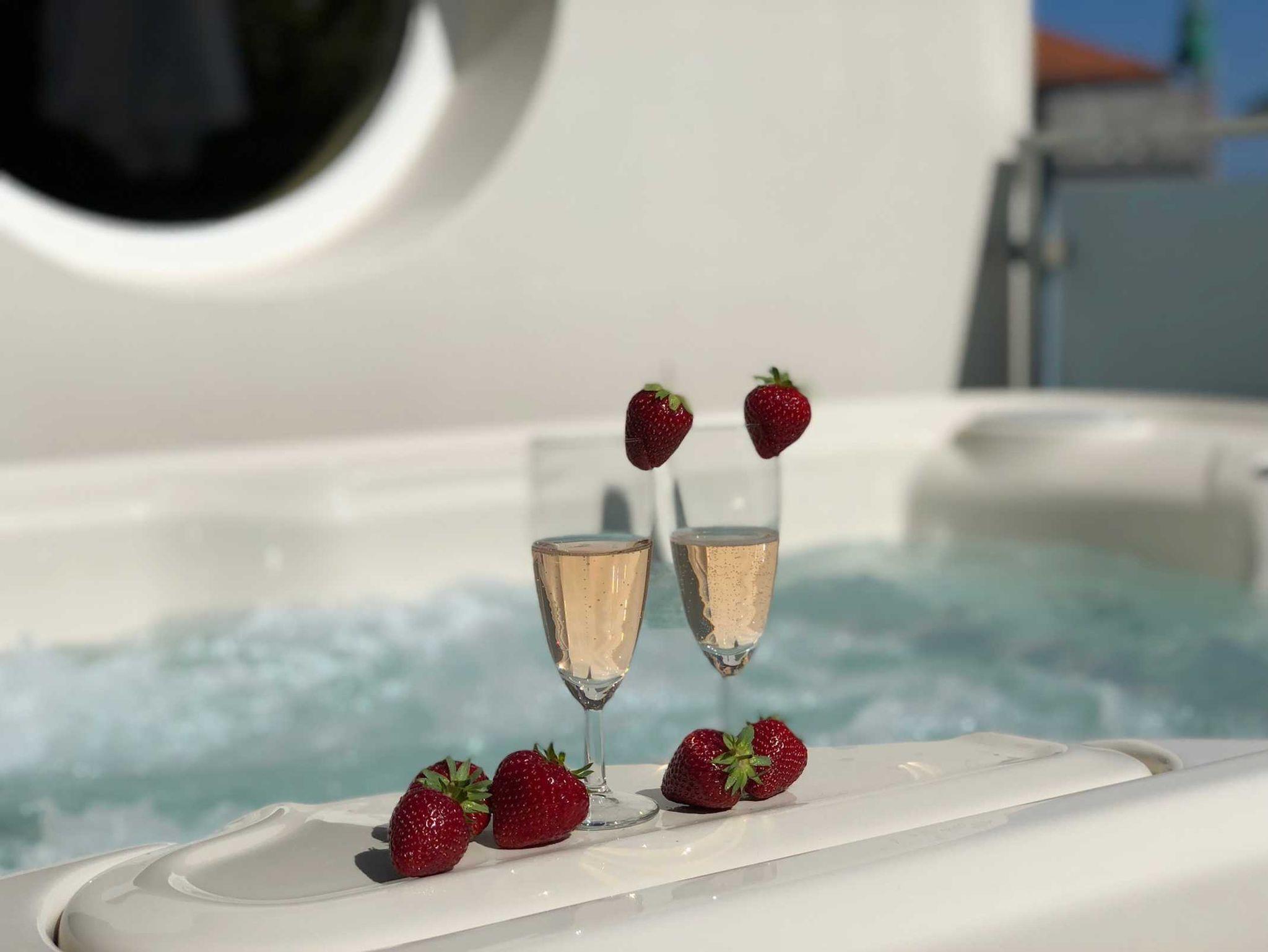 - Whirlpool auf der Terrasse mit Blick in die Sauna