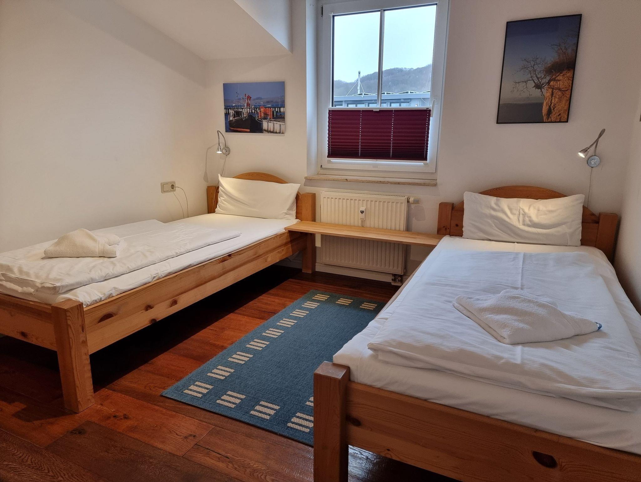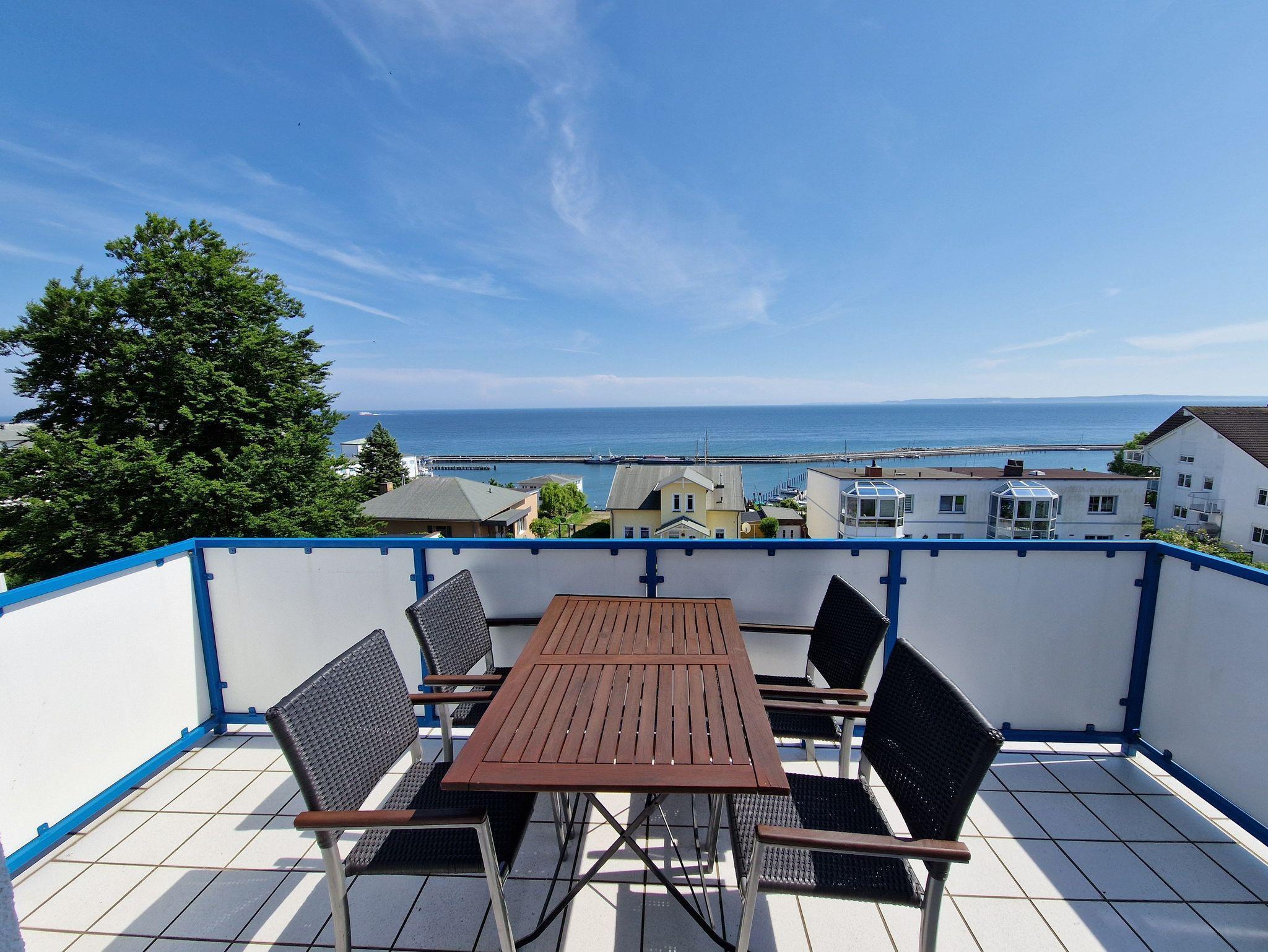 Die gemütlich und modern eingerichtete 3-Raum-Ferienwohnung besteht aus einem Wohnraum mit separater Sitz- und Eßecke, TV, WLAN, Radio und CD-Player. Vom Wohnzimmer aus erreichen Sie den großen Balkon, dieser lädt zum Verweilen ein. Sie genießen einen herrlichen Seeblick und können die Schiffe beim Ein- und Auslaufen im Stadthafen beobachten. Der Balkon ist ausgestattet mit Sonnenmöbel und einer elektrischen Markise. Die zwei separaten Schlafräume sind jeweils mit einem Doppelbett ausgestattet. Das neue Badezimmer bietet eine große Dusche, Waschtisch mit Spiegelschrank und Toilette. In der separaten Küche haben Sie die Möglichkeit sich selbst zu verpflegen. Hier befindet sich ein Herd mit Backofen, eine Spülmaschine, eine Mikrowelle und natürlich alles was dazu gehört.