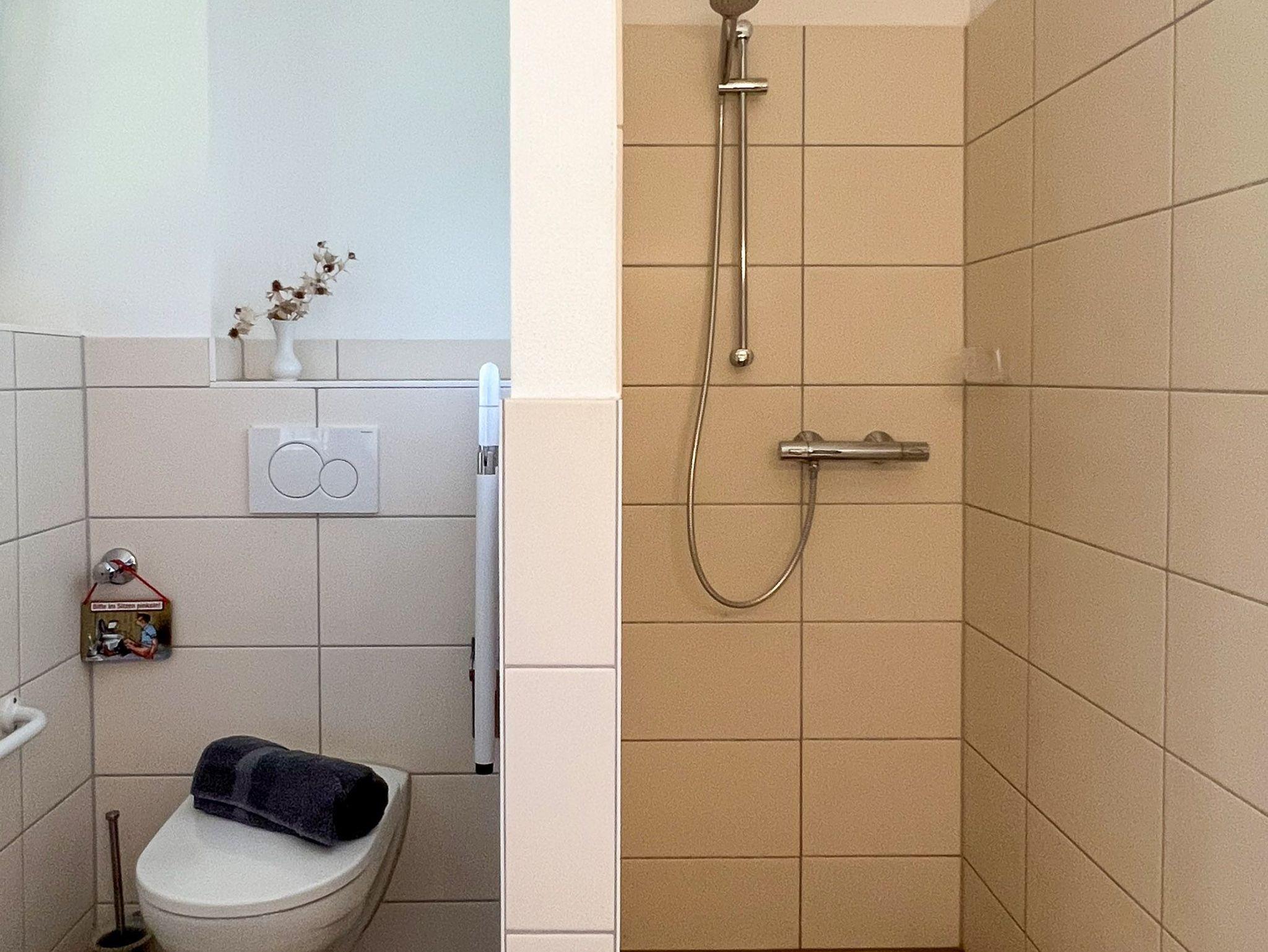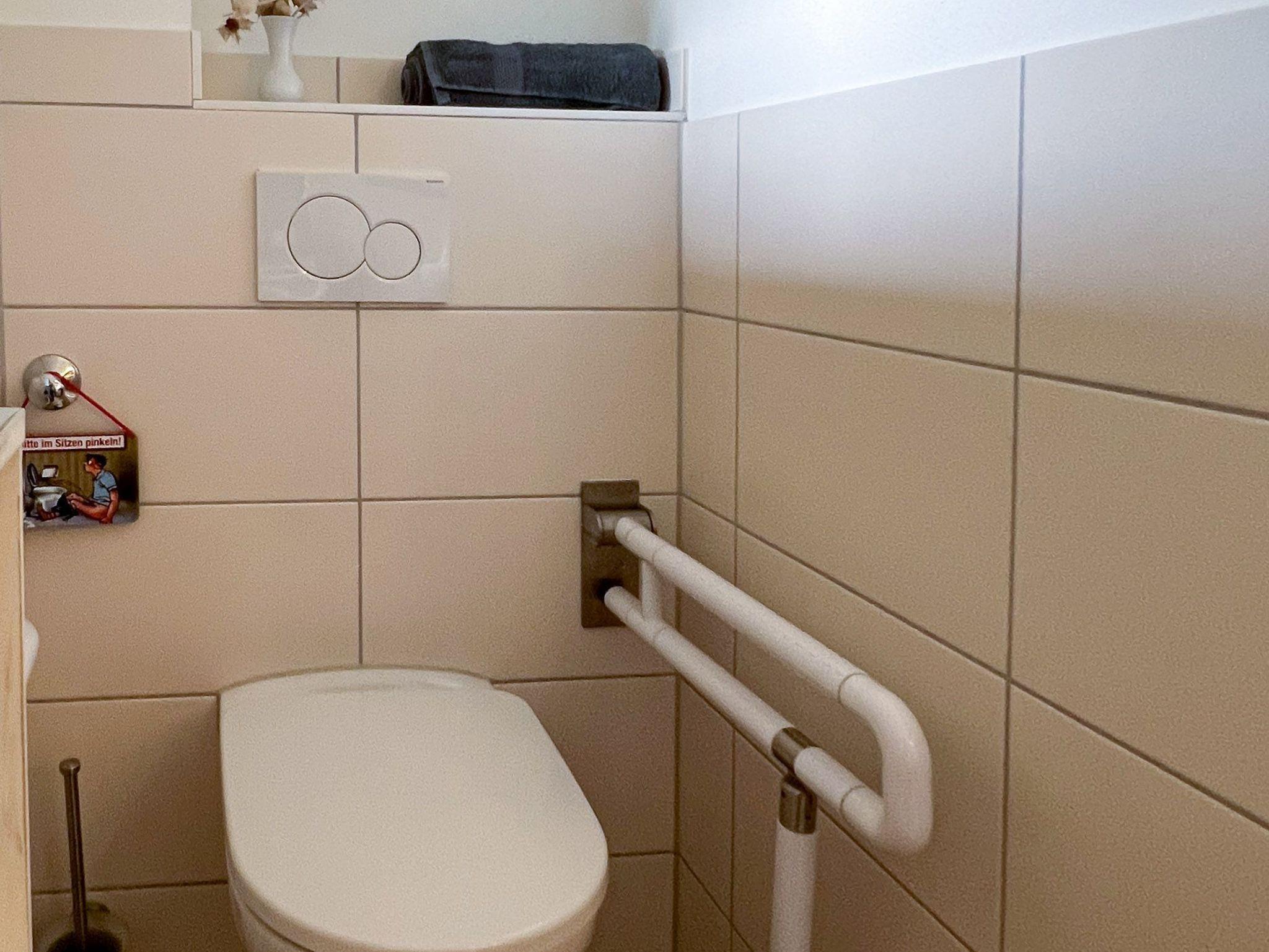 Das Erdgeschoss ist komplett barrierefrei - Parkplatz, Zugang, Wohnbereich mit Schlafcouch, Essbereich, Küche, Bad, Dusche, WC, beide Terrassen barrierefrei.