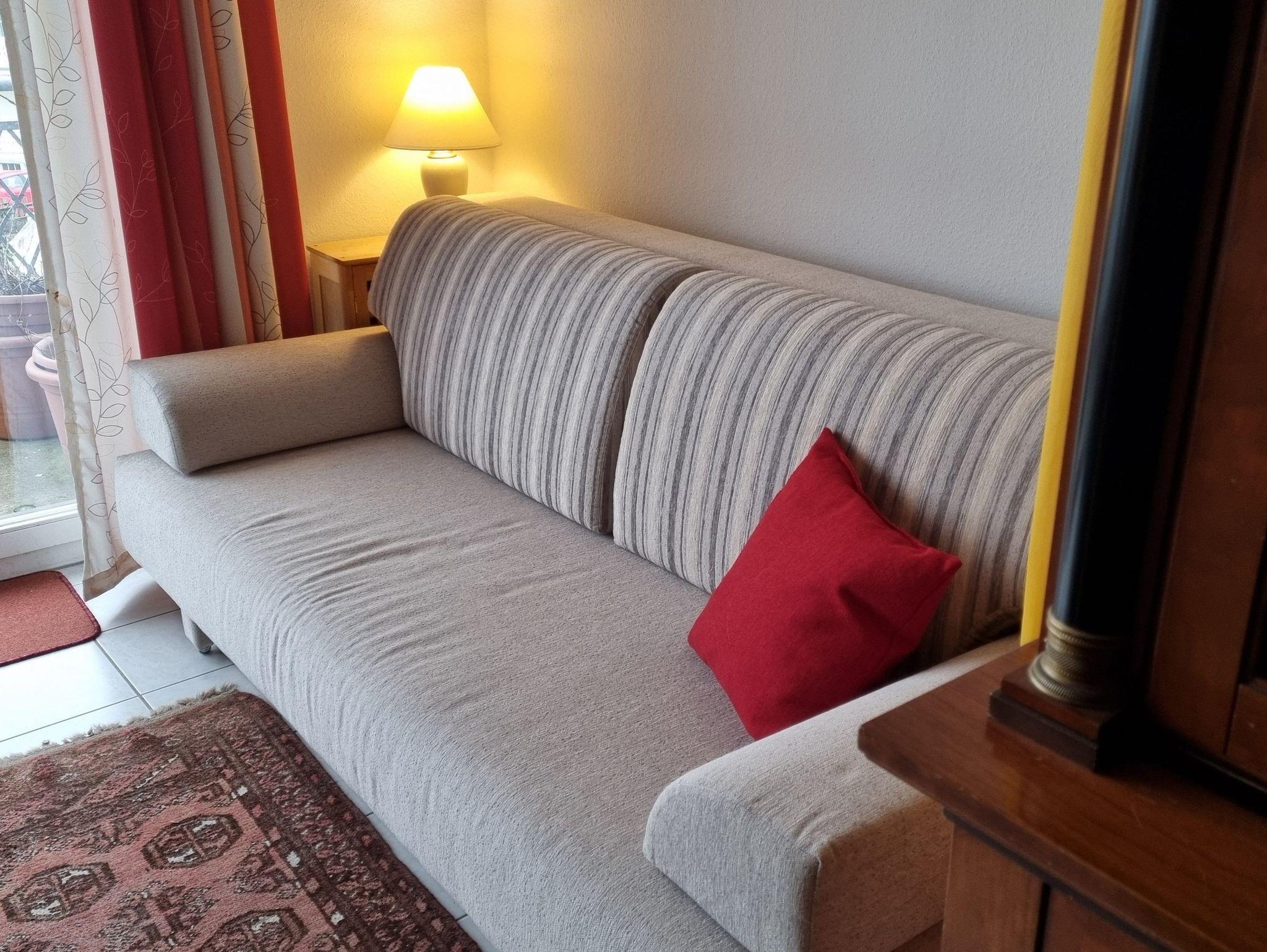 ? Wohn-Esszimmer mit Doppelbettcouch, 2 Regalen /Nachttischen mit Tischleuchten und Radio-CD-Player, 2 weitere