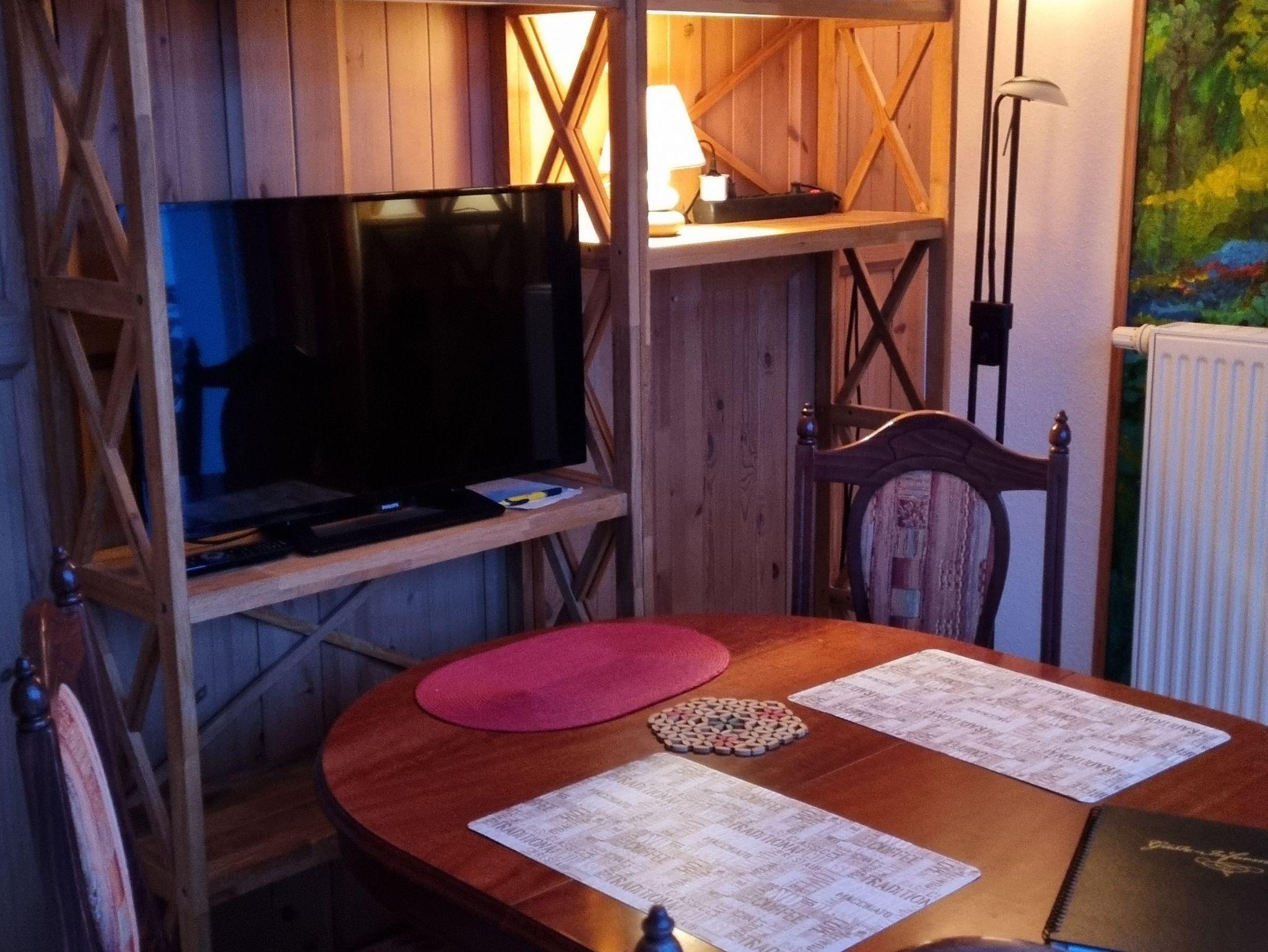 Regale mit Flachbildschirm-Fernseher, kostenfreies W-LAN, Esstisch, 4 Stühle, 1 Stehlampe mit Deckenstrahler