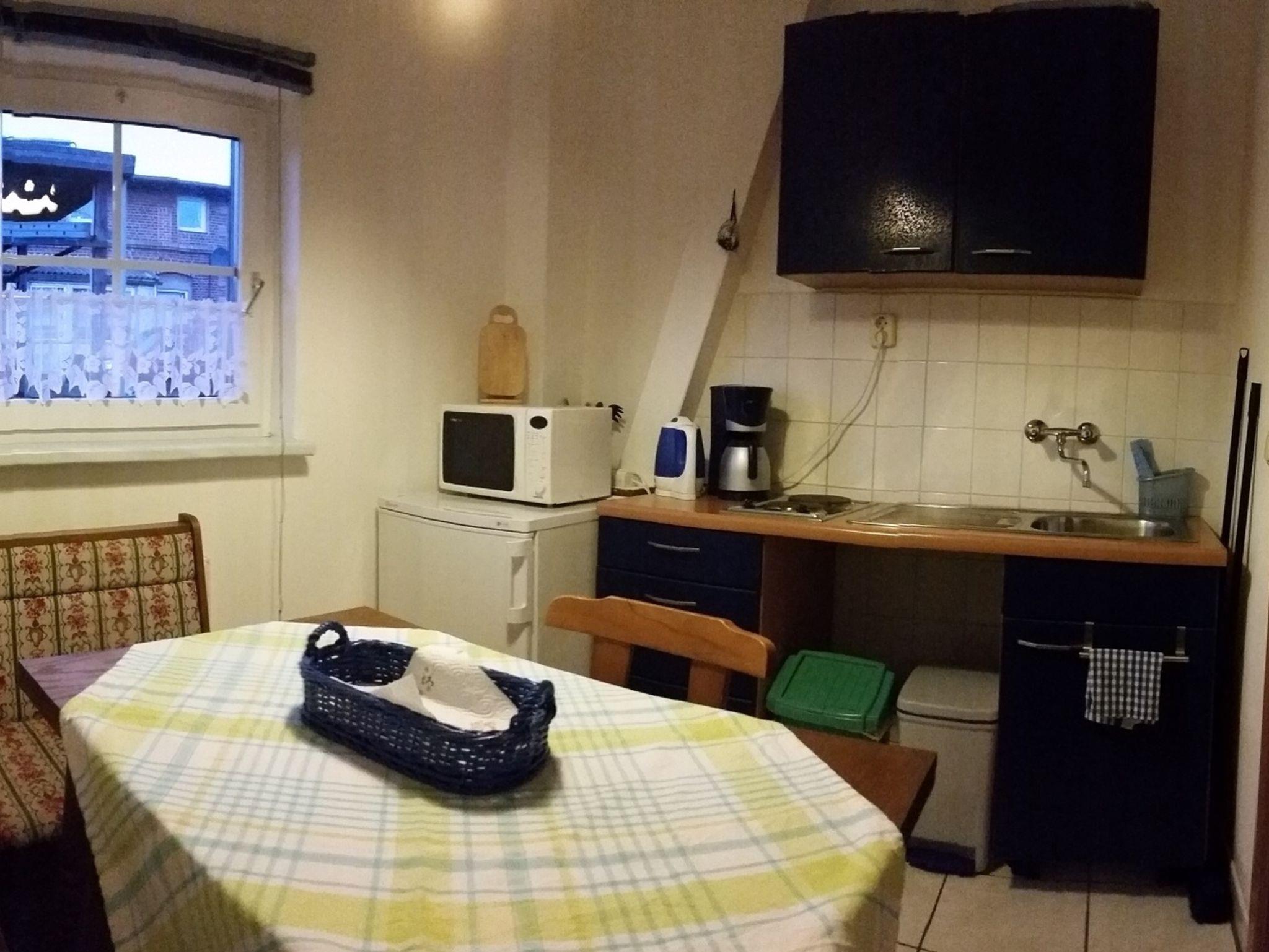 Die Ferienwohnung befindet sich in einem sep. Ferienhaus auf dem Grundstück des Eigentümers im Erdgeschoss. 1 Wohnküche mit Küchenzeile und Sitzecke, 1 Wohn-,Schlafraum mit Doppelbett, TV, Radio,, DU/WC für max. 2 Pers.