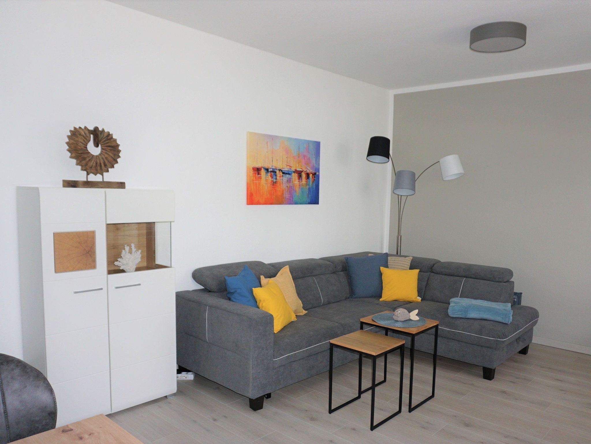 Die 2022 neu - renovierte und eingerichtete Ferienwohnung verfügt über einen großzügigen Wohn-Essbereich - mit Sicht auf den schön angelegten Garten und das Meer.