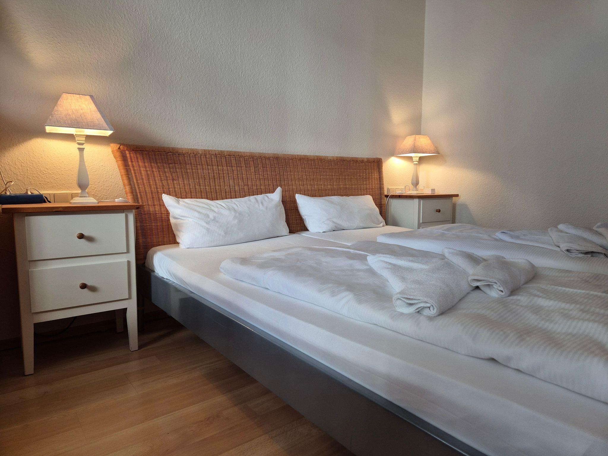Der große Südbalkon mit 100 Prozent Meerblick ist ein Ereignis: Frühstücken Sie am Bistrotisch oder lesen Sie auf dem Loungesofa ein schönes Buch. Im Zwei-Zimmer-Apartment schlafen Sie in einem separaten Schlafzimmer mit Doppelbett (180 x 200 cm), kochen in einer gut ausgestatteten offenen Küche und relaxen im Wohnbereich mit Sofa und TV. Das Apartment verfügt über ein Duschbad. Übrigens: Für die dritte Person können Sie das Schlafsofa nutzen.