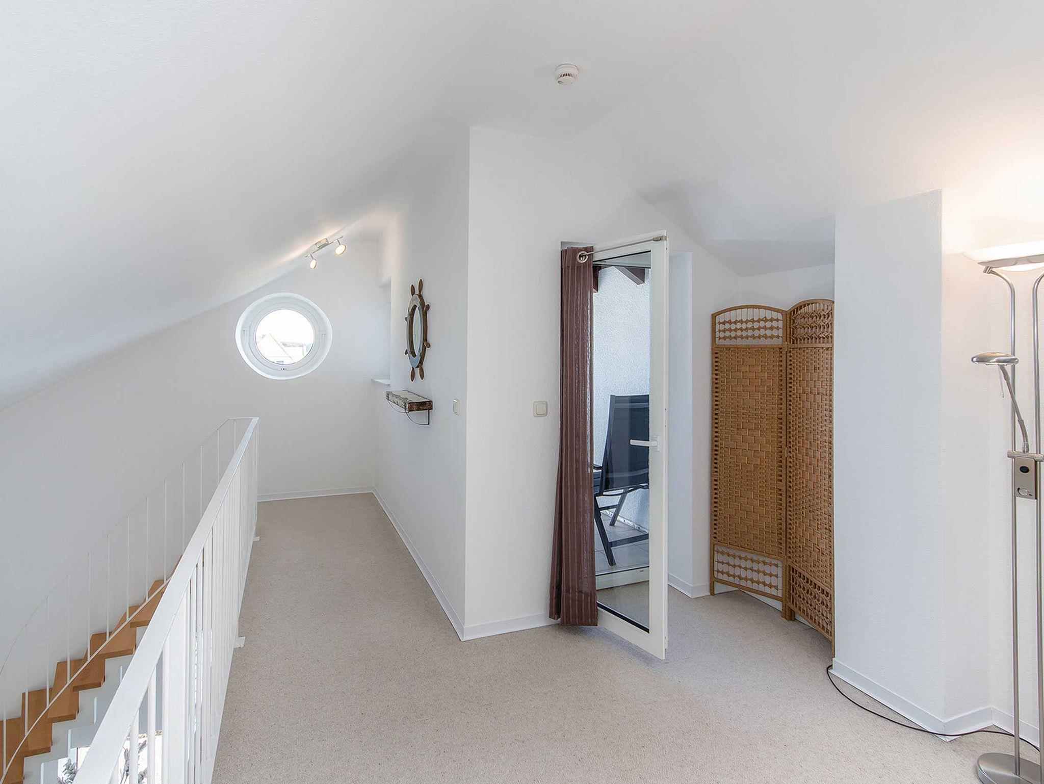 ? Im Galeriebereich steht eine gemütliche Couchgarnitur, die auch als Aufbettungsmöglichkeit für die 3. und 4. Person dient.