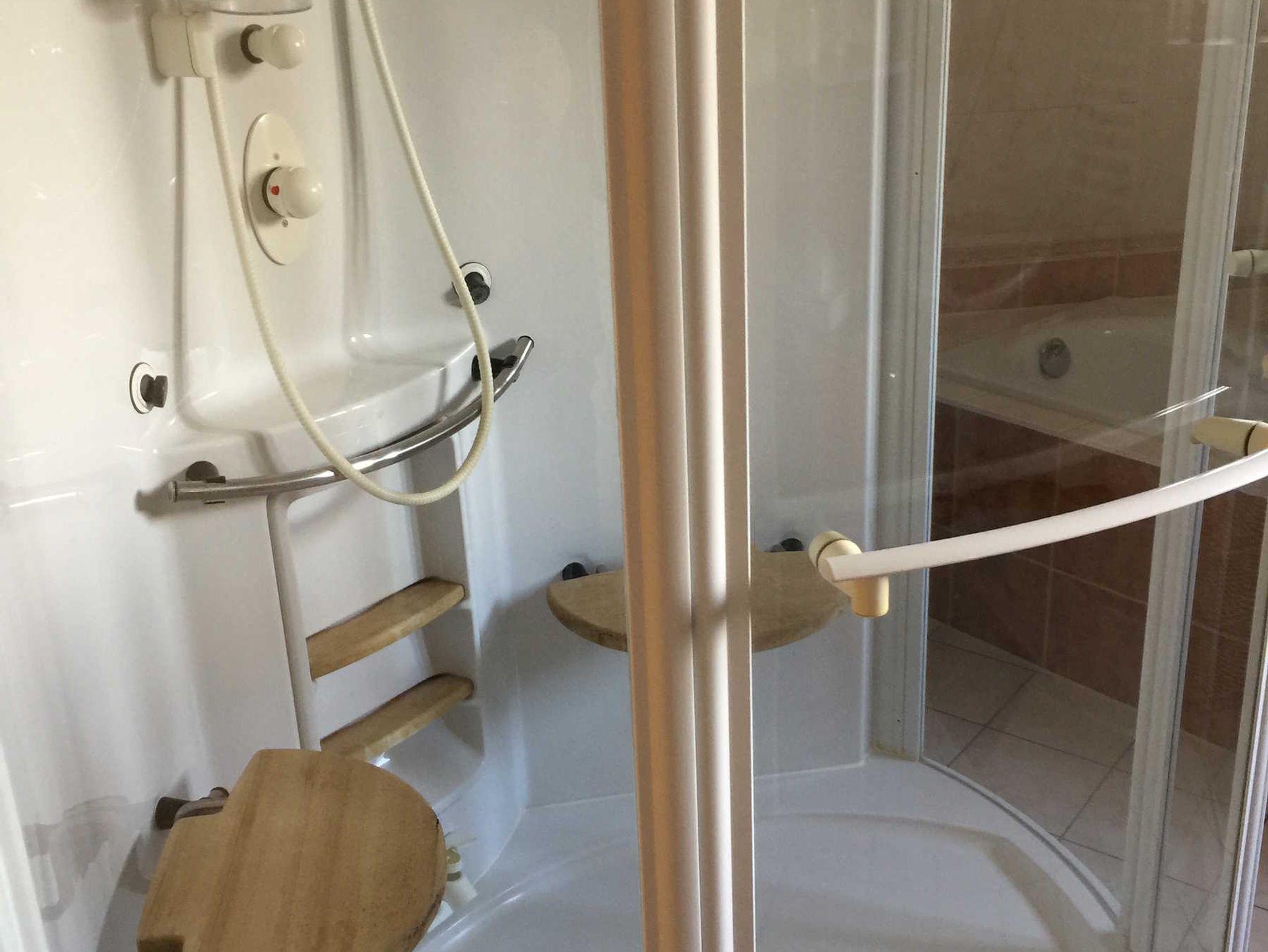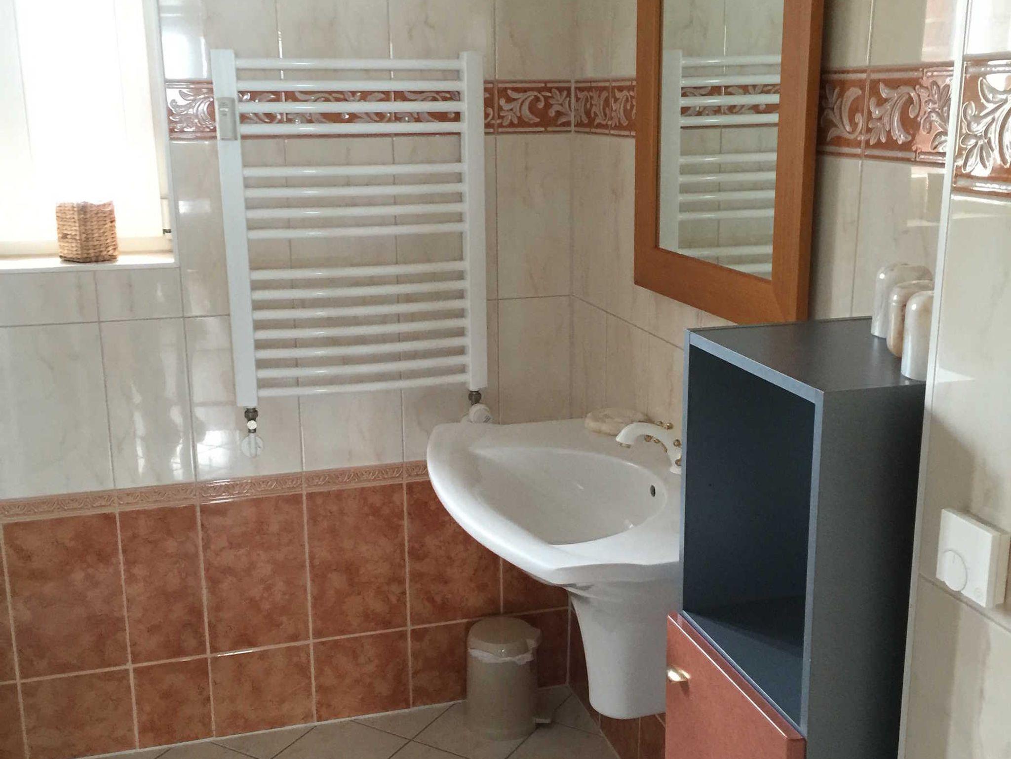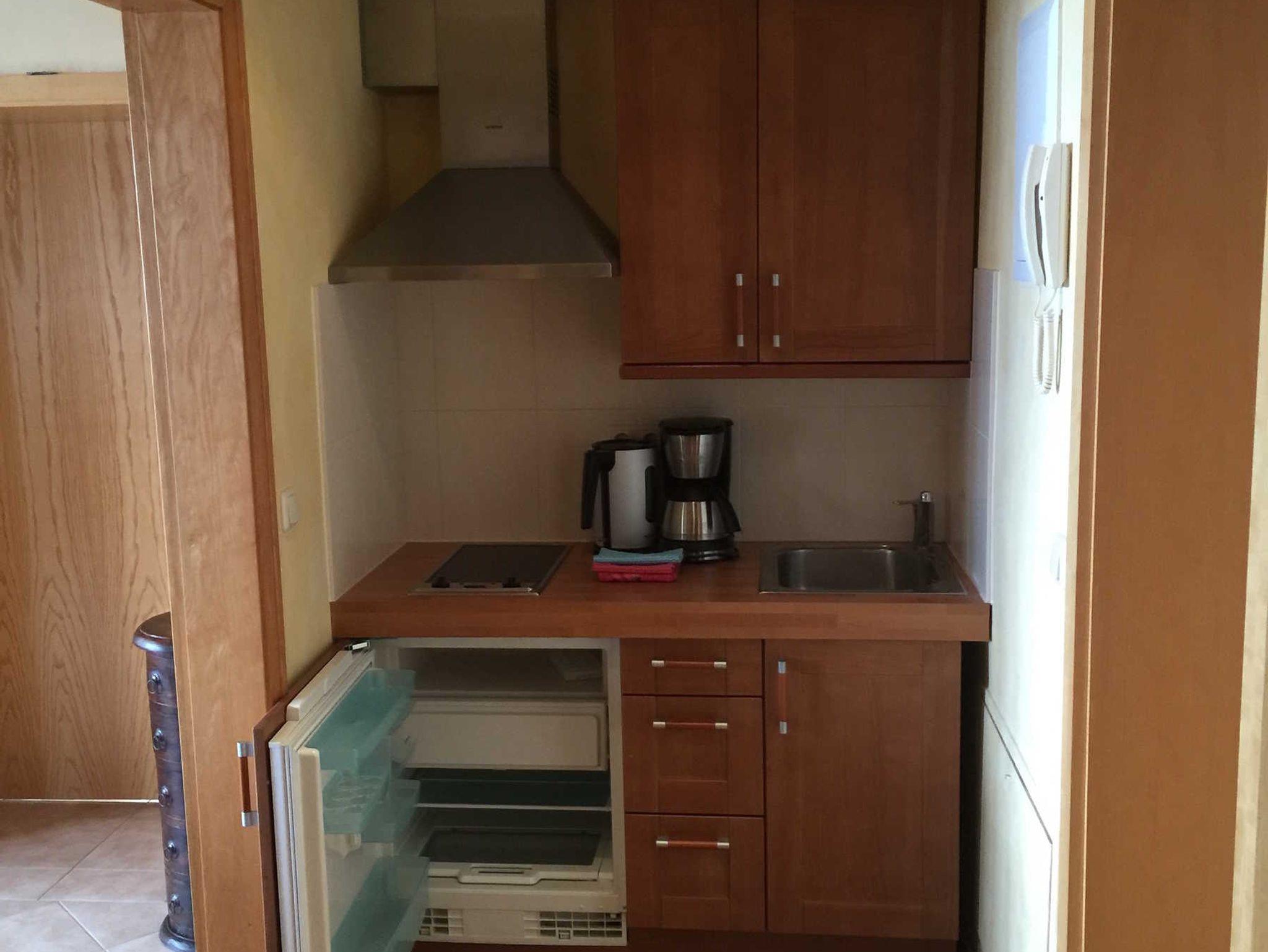 Die kleine Küche/Kitchenette ist mit dem üblichen Geschirr/Besteck etc. ausgestattet. Im Bad befindet sich eine Dusche, die auch als Dampfdusche genutzt werden kann mit zwei Holzsitzen, sowie eine Badewanne. Des Weiteren ist eine Waschmaschine vorhanden. Es gibt drei Schlafzimmer: Ein abschliessbares Zimmer mit zwei Einzelbetten, sowie im oberen offenen Maissonettebereich ein Doppelbett, daneben eine kleine abschliessbare Kammer mit einem Einzelbett. Bettwäsche und Handtücher werden bereitgestellt. Hierfür werden bei Buchung automatisch pro Aufenthalt und Person einmalig 25,00 € berechnet.