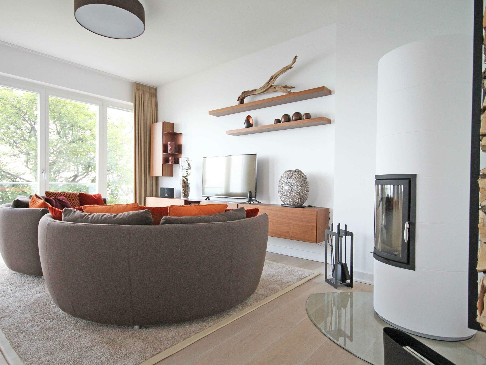 Der lichtdurchflutete Wohnbereich lädt ein mit zwei bequemen italienischen Lounge-Sofas, modernen Bo-Concept Schränken, einem LG Ultra-HD Smart-TV, Apple-TV, Blu-Ray 3D Player und einer BOSE Sound-Touch-Anlage. Genießen Sie von hier aus den atemberaubenden Ausblick auf die Ostsee. In der kühleren Jahreszeit verbreitet ein prasselndes Feuer im großen Kamin Behaglichkeit und Romantik.