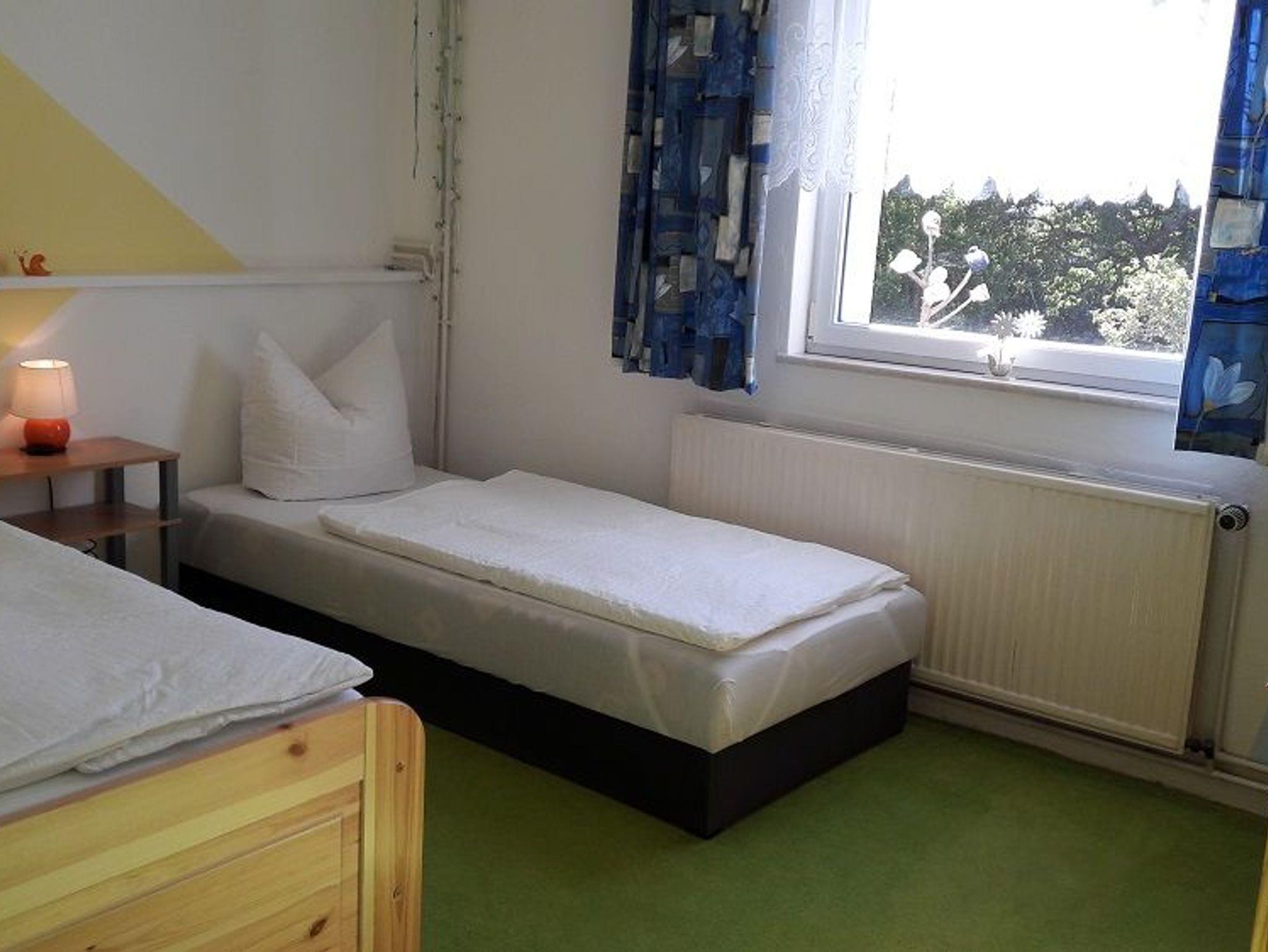 Ein weiteres Schlafzimmer mit zwei einzel stehenden Betten.