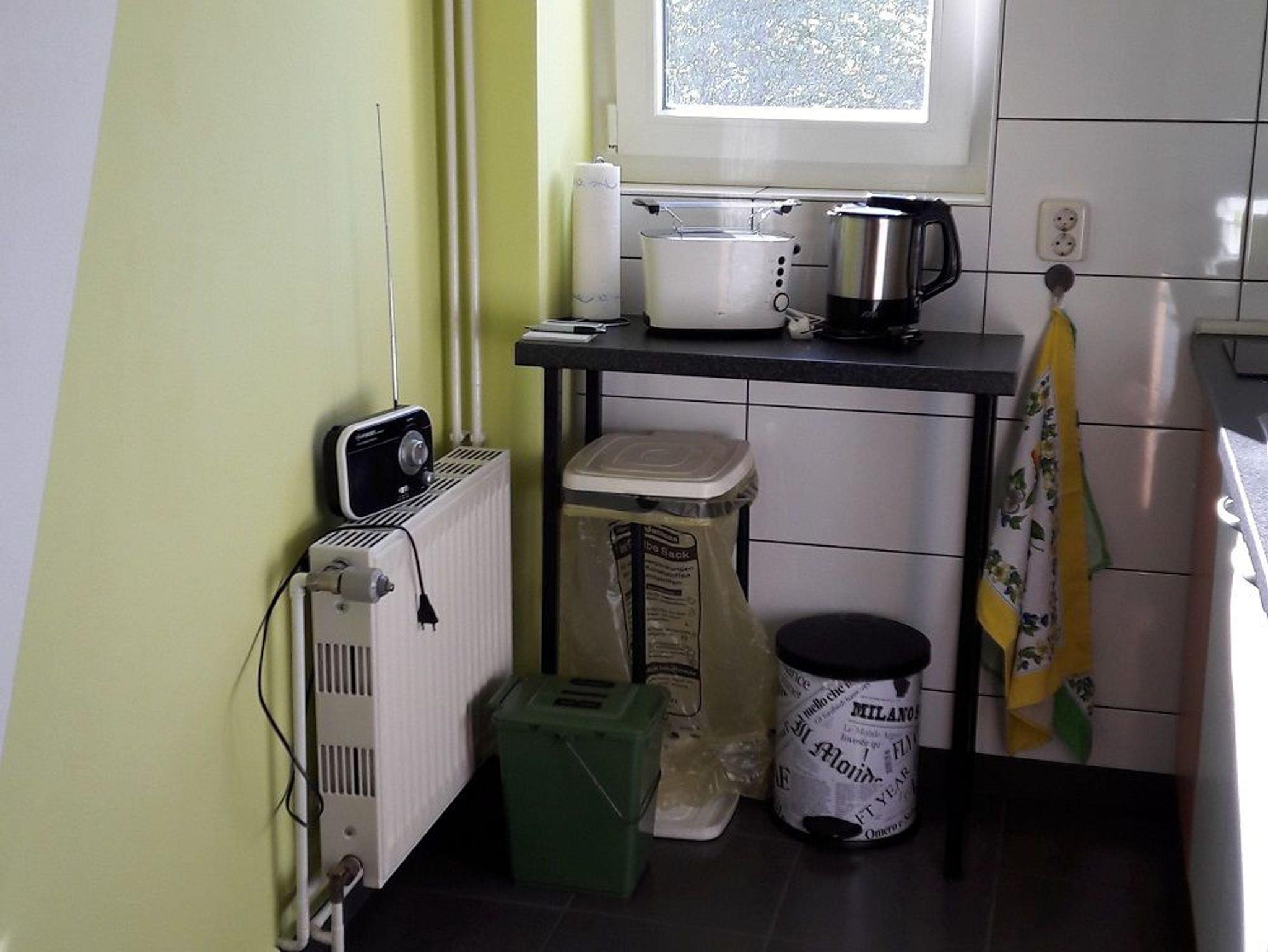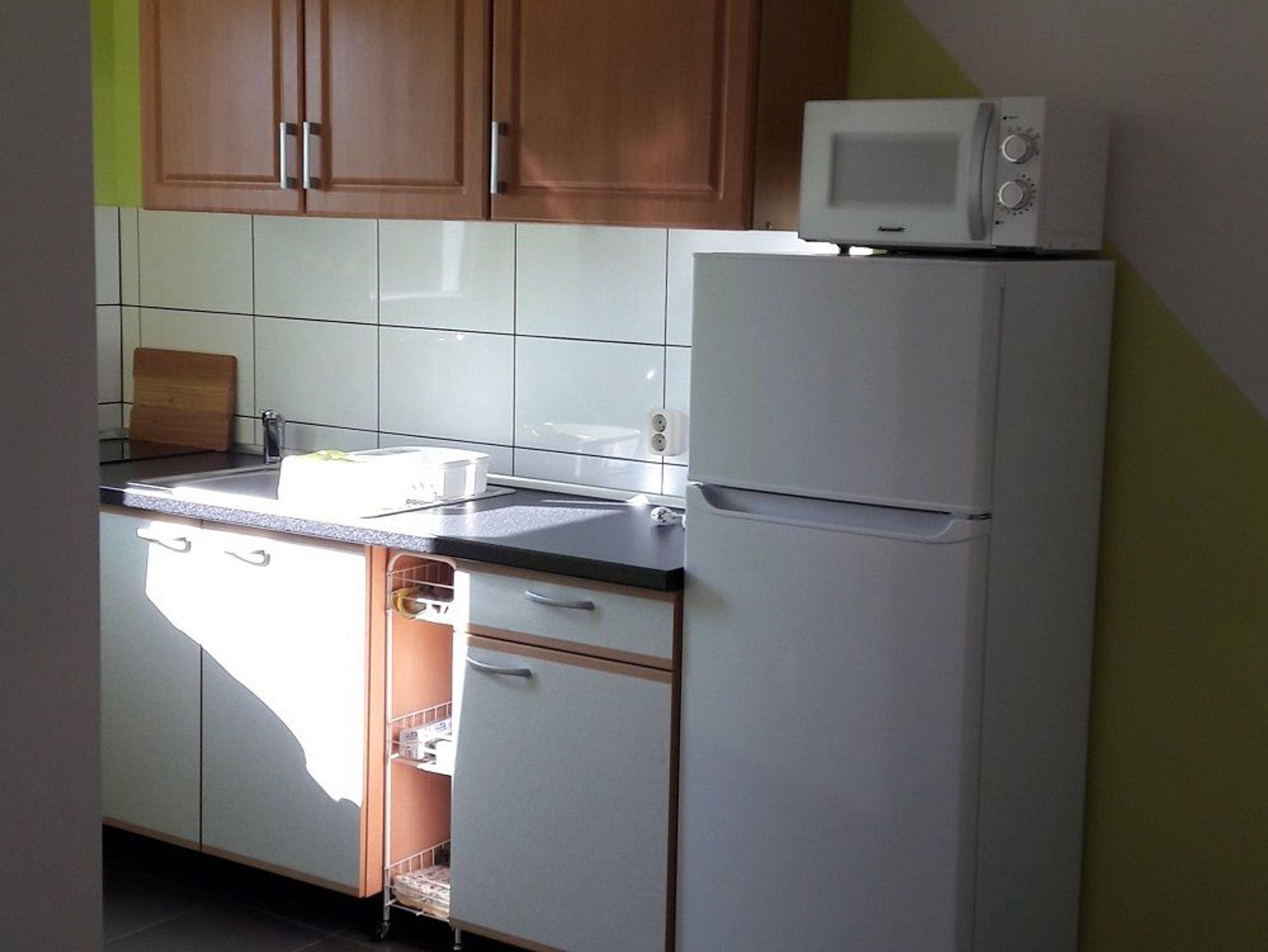 Eine Miniküche mit Ceran-Kochfeld (2 Felder), Mikrowelle