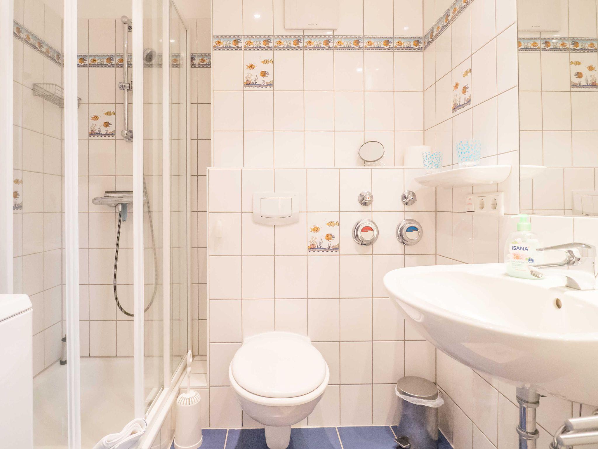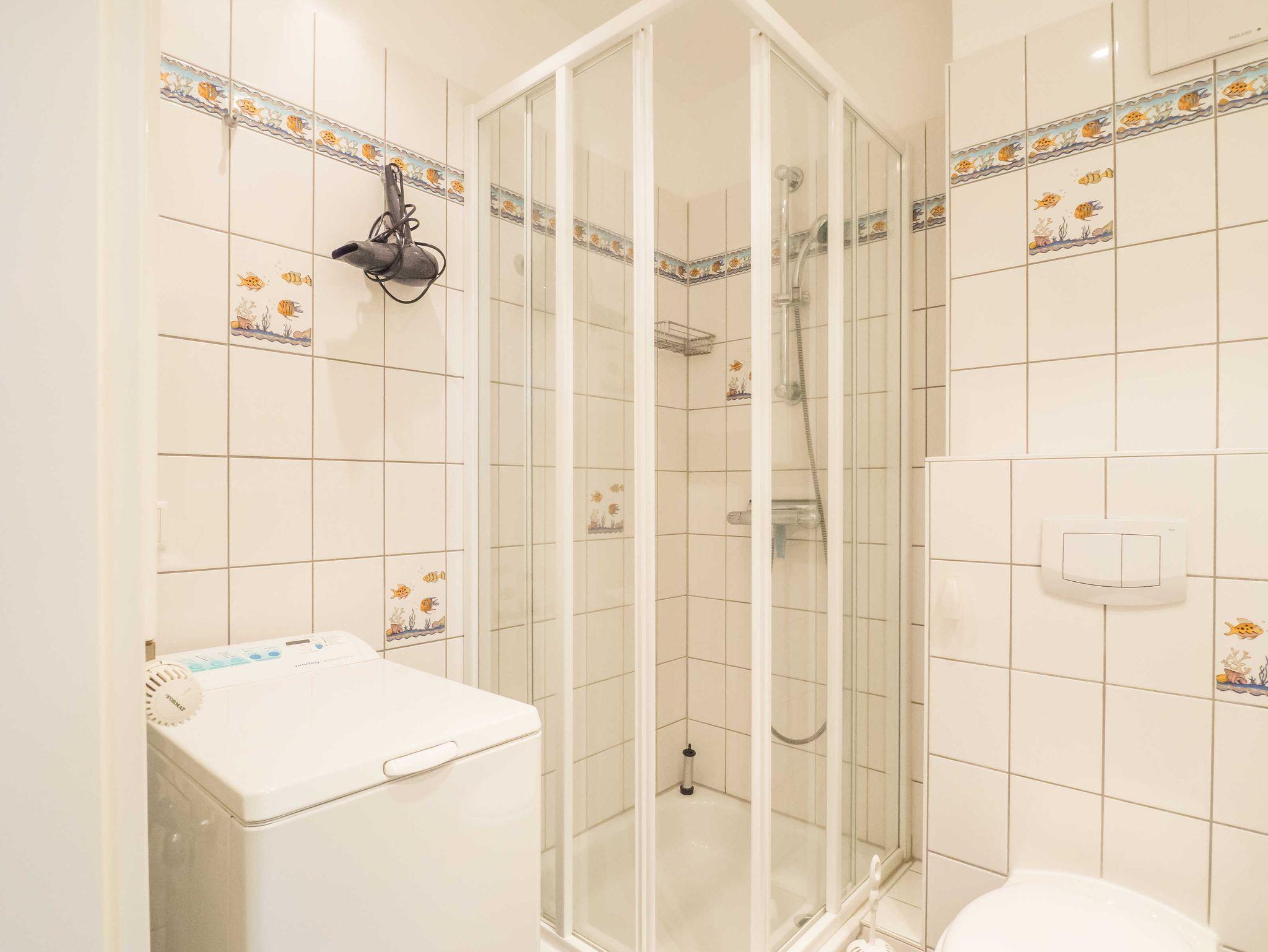 Das komfortable Duschbad/WC verfügt über eine Waschmaschine, die Ihnen zur Verfügung steht.