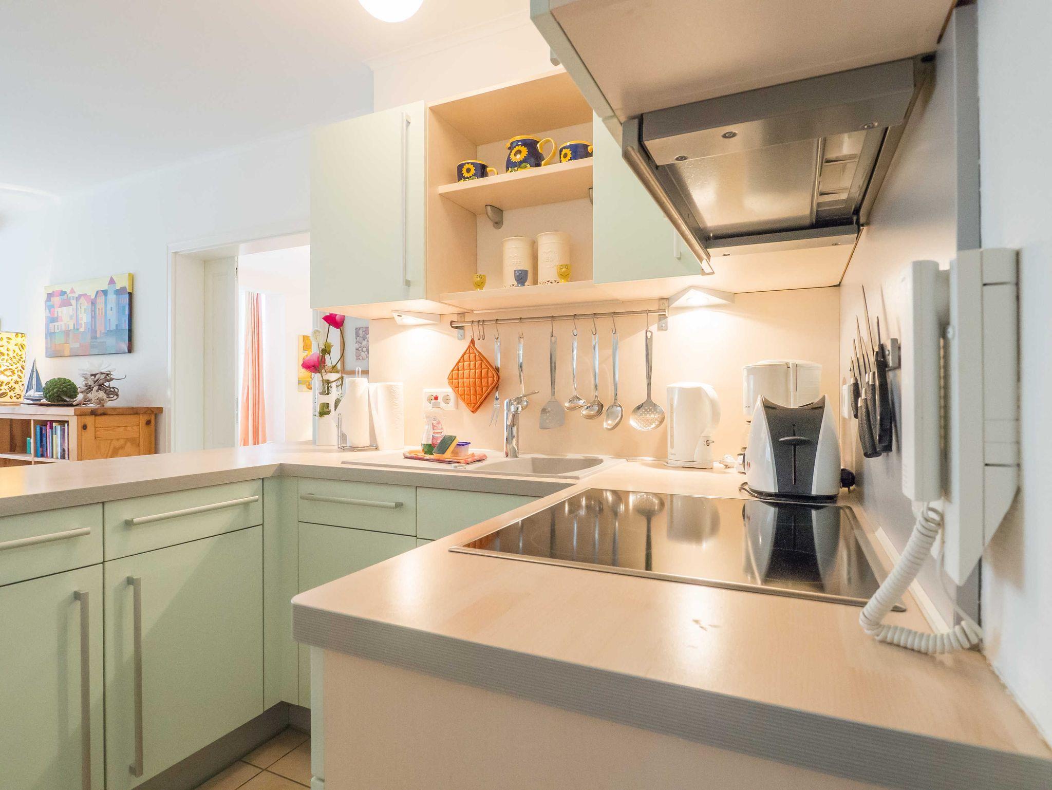 Der Esstisch lädt Genießer ein, und in der voll ausgestatteten Küche ? mit Geschirrspüler, Toaster und weiteren Annehmlichkeiten ? können Sie Ihrer Kreativität freien Lauf lassen.