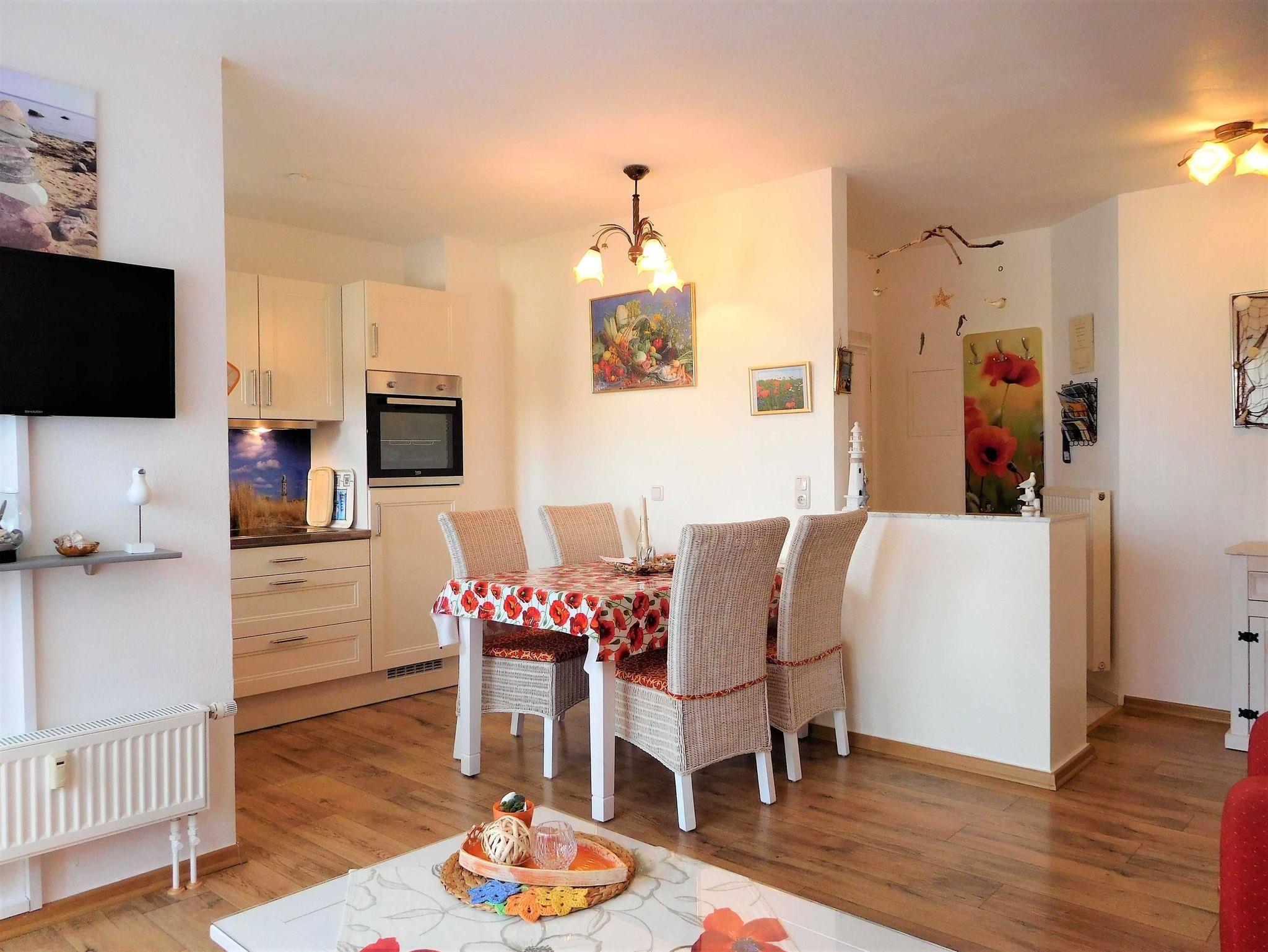Angrenzend ist der Essbereich großem Tisch und 4 bequemen Stühlen.