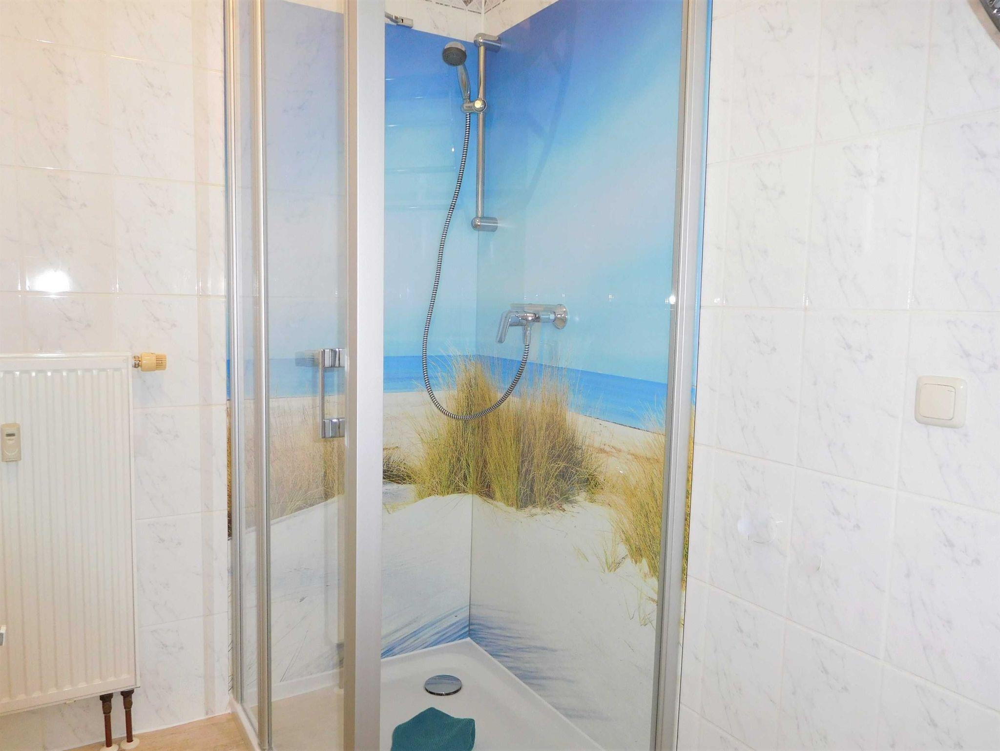 Im Bad erwartet sie zum entspannen eine schöne Dusche.