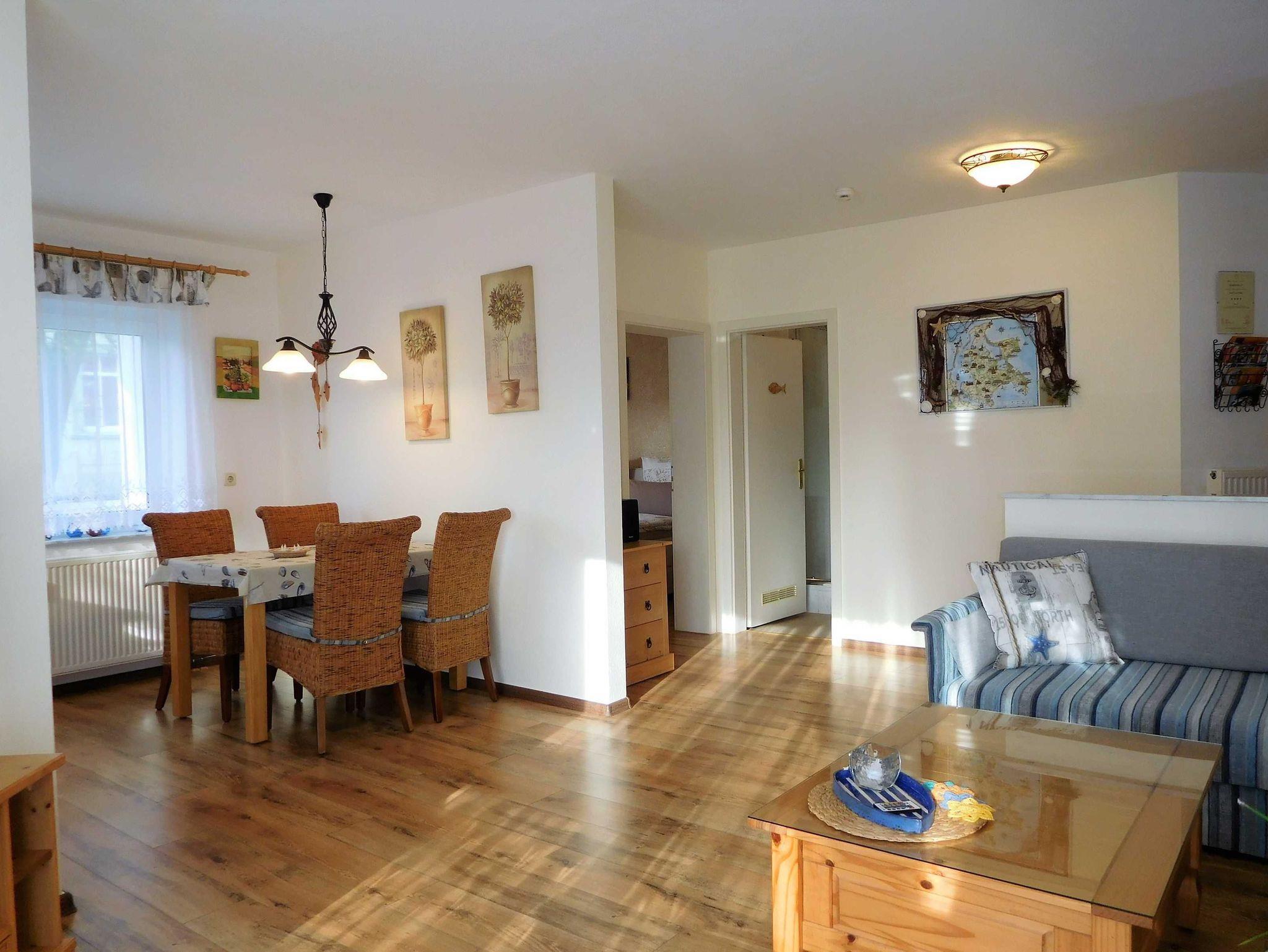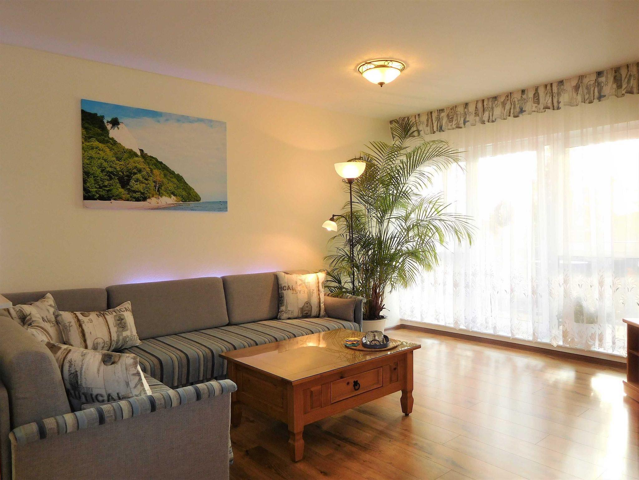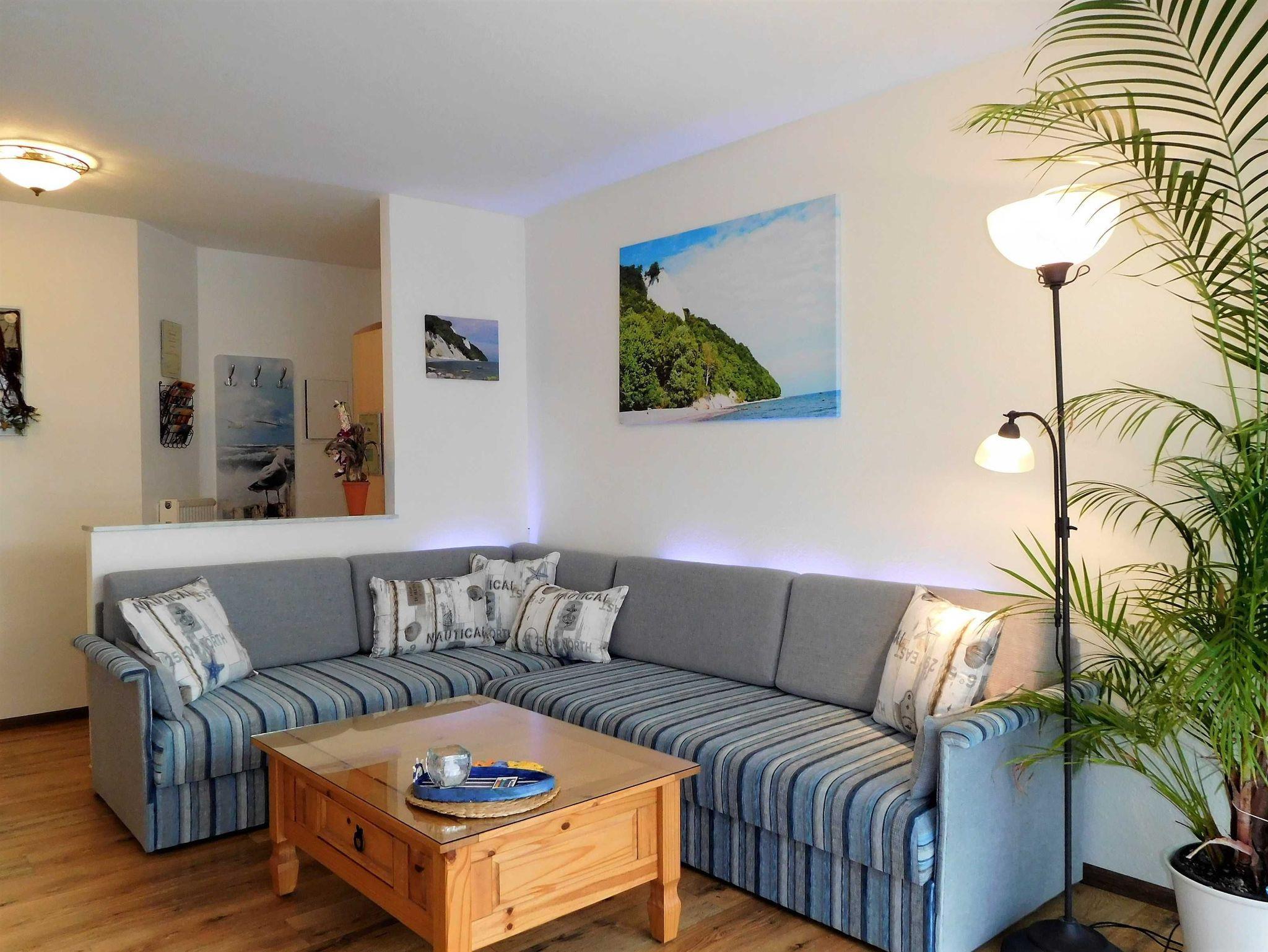 Ferienwohnung Sassnitz. Diese Komfort-Ferienwohnung befindet sich in bevorzugter Lage am Hochufer in einem gepflegten Apartmenthauses in ruhiger Lage aber sehr Zentral. Sie verfügt über einen großen lichtdurchfluteten Wohnraum mit einer gemütlichen Eckcouch wo sie sich beim Sat.- Fernsehen oder Musikhören entspannen können.Oder setzen sie sich auf den Balkon mit Gartenmöbeln,Sitzkissen und Sonnenschirm.Leckeren Fisch den sie gerade am Hafen direkt vom Fischer geholt haben bereiten sie in der kompletten Einbauküche mit allem Komfort , wie Geschirrspüler,Mikrowelle,Ceranfeld,Kühl-Gefrierkombi usw mit Freude zu.Speisen können sie auf bequemen Stuhlsesseln am grossen Esstisch. .Die Nacht geniessen sie im grosszügigen Schlafzimmer mit Doppelbett und 2. Balkon und auf der Eckcouch.Das Bettzeug wird ganz einfach aus dem Bettkasten hervorgezaubert und verschwindet am Tag auch wieder darin.Im Bad erwartet sie zum Entspannen eine schöne Dusche. Auch ihr Auto hat einen eigenen PKW-Stellplatz auf dem Hof. Bettwäsche inklusive. Handtücher bitte selbst mitbringen.