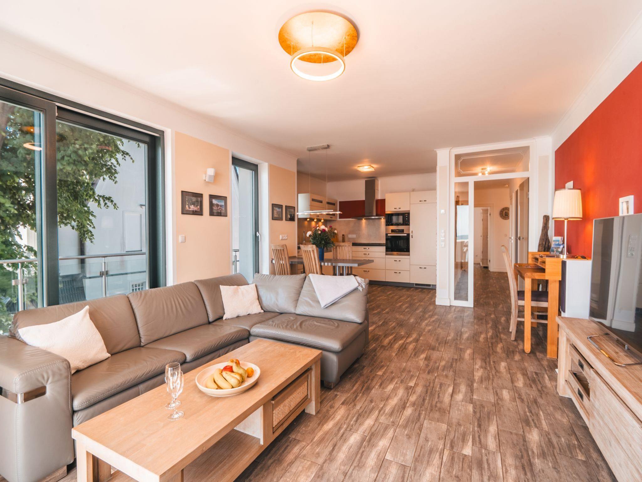 Wir bieten Ihnen ein großzügiges, luxuriöses Urlaubsdomizil mit 96 m² für 4 Personen in repräsentativer Lage. Genießen Sie die die stilvolle Atmosphäre mit eleganter, hochwertiger Ausstattung und der überwältigende Aussicht auf die Ostsee.