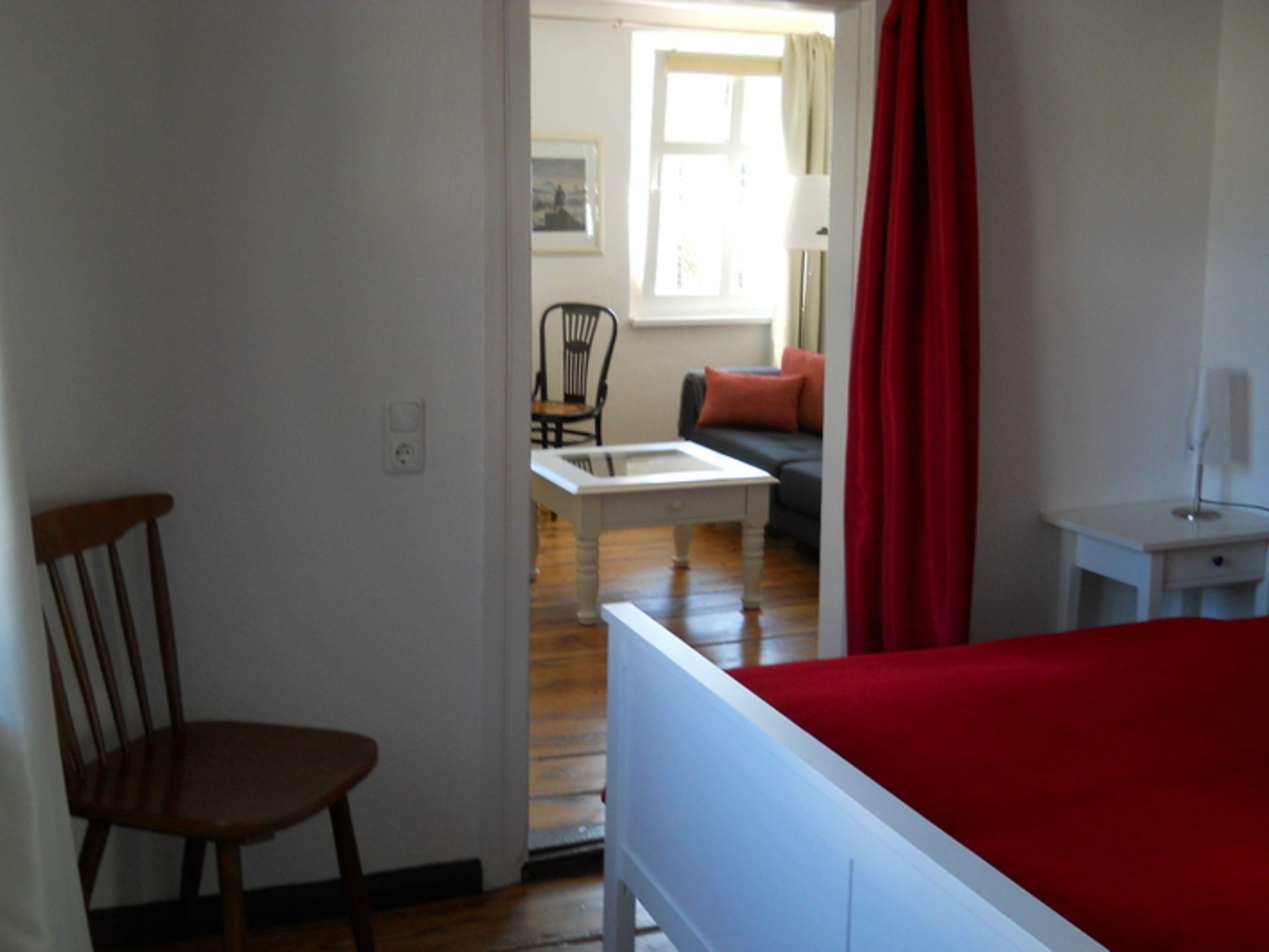 - ein großes helles Wohnzimmer mit Meerblick von 16 qm mit einer Essecke, Schlafcouch mit TV-Sat und einer voll eingerichteten Küchenzeile (Herd mit 3 Ceranfeldern, Kühlschrank,Tiefkühlfach, Toaster, Kaffeemaschine, Wasserkocher, Mini-Backofen); ein historischer Wandschrank bildet eine kleine Garderobe