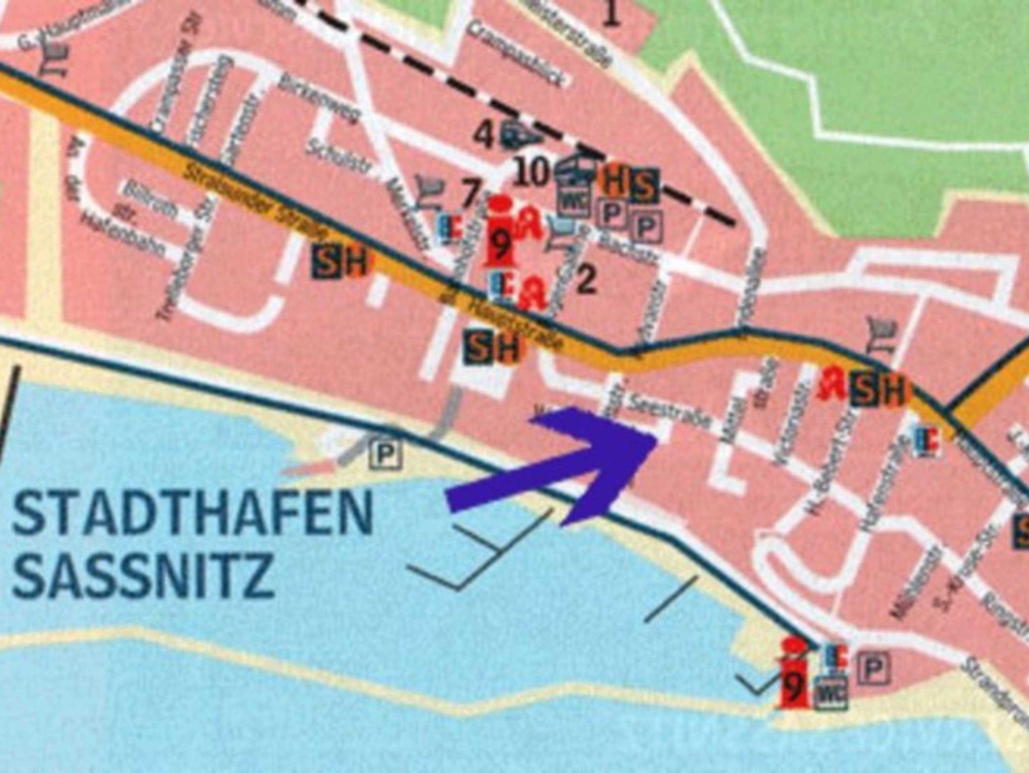Die Ferienwohnung befindet sich im Erdgeschoß eines Einfamilienhauses in zentraler Lage, in der Nähe des Stadthafens, ca. 1 km vom Bahnhof und Busbahnhof entfernt. Sassnitz ist ein Staatlich anerkannter Erholungsort und daher kurabgabepflichtig.