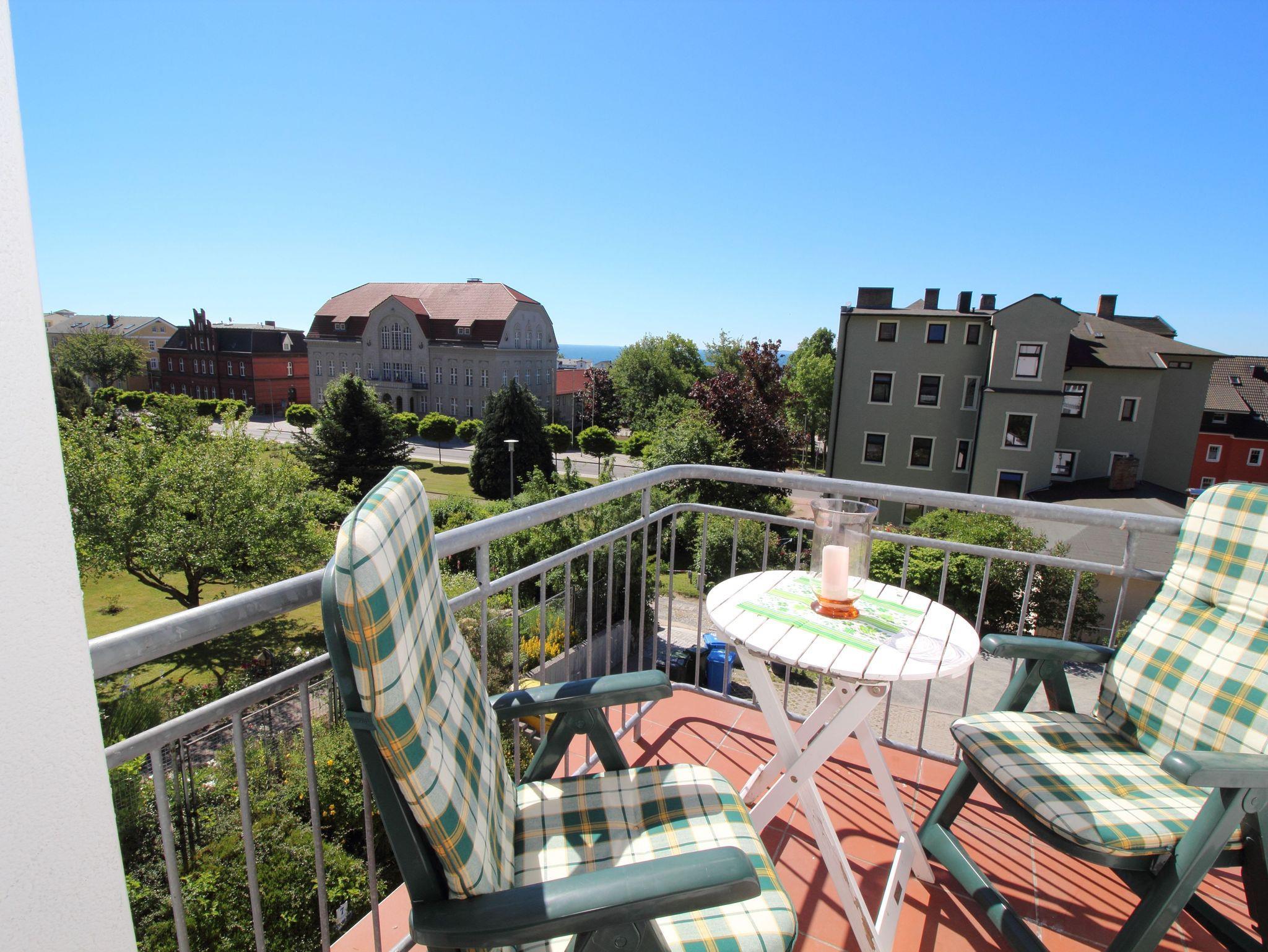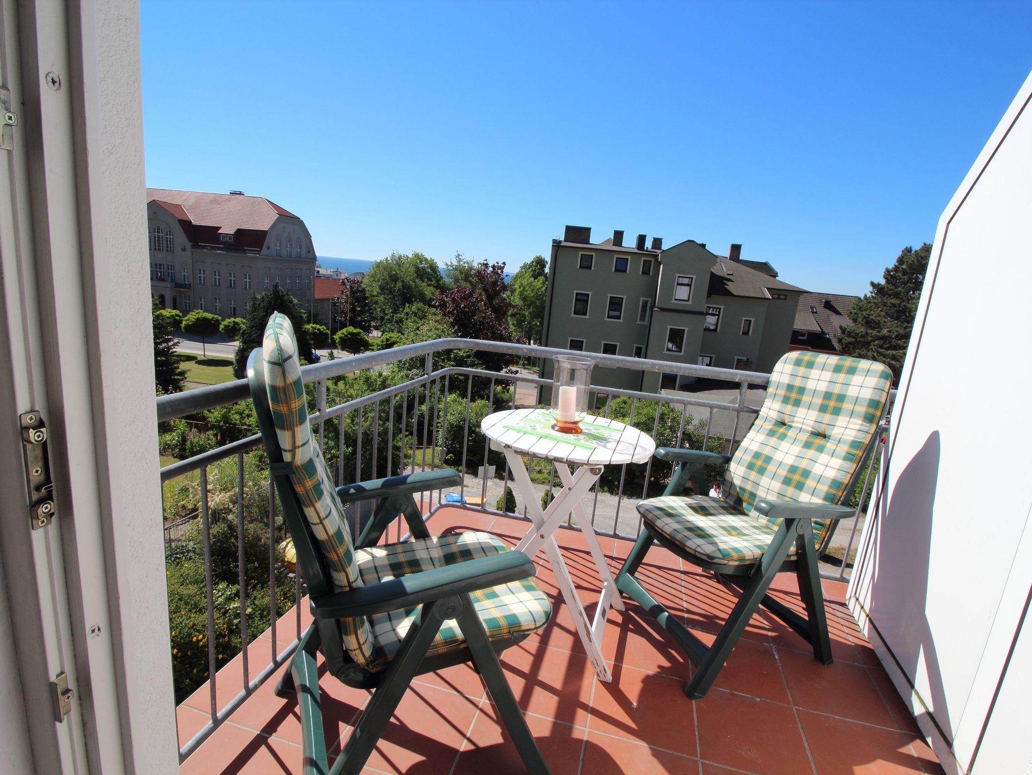 Gemütlich eingerichtete 2-Zimmer-Ferienwohnung (50 qm) mit separater Küche und südlich ausgerichtetem Balkon mit Ostseeblick