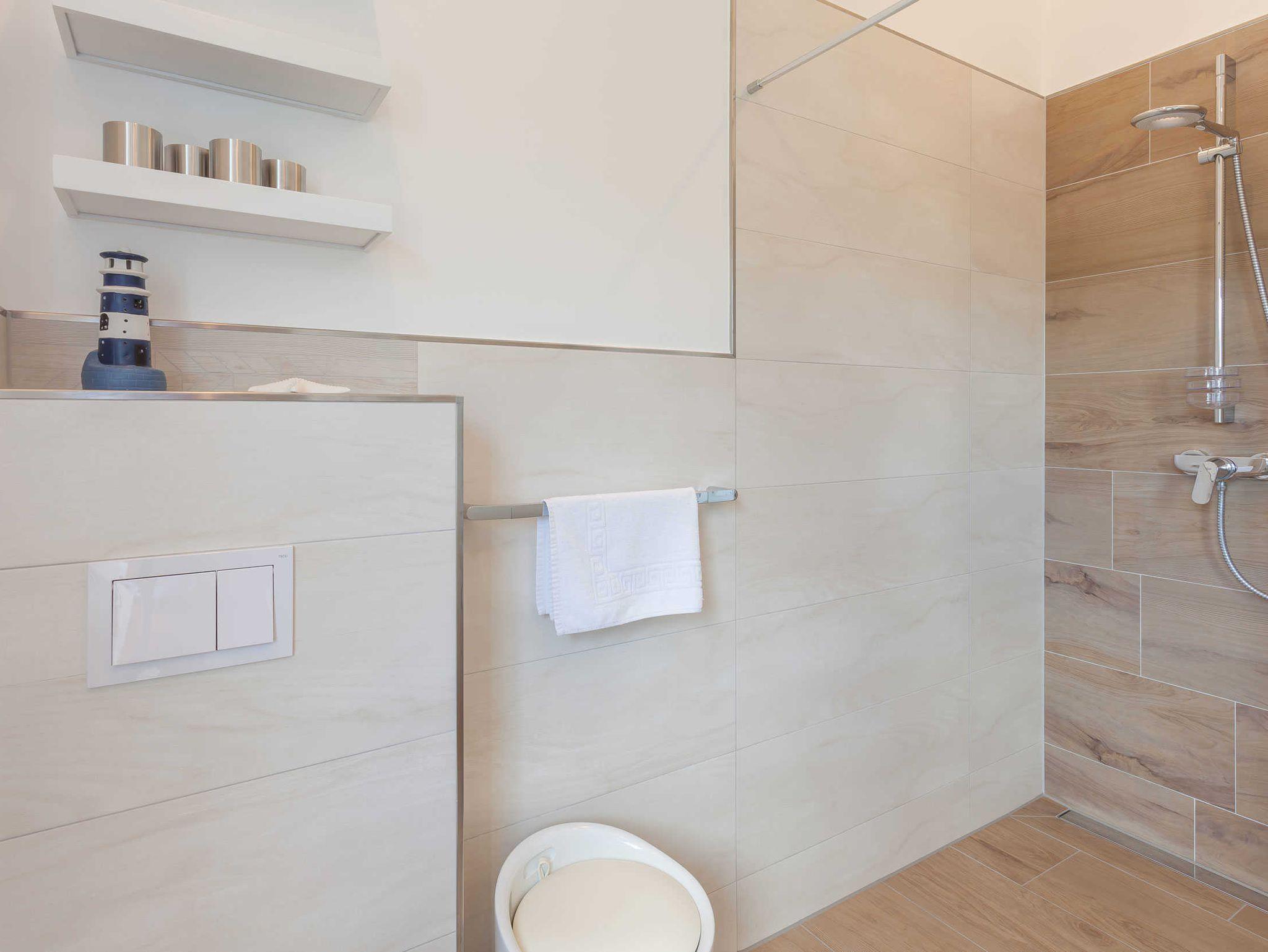 - Bad mit Dusche (ebenerdiger Einstieg) und Fußbodenheizung