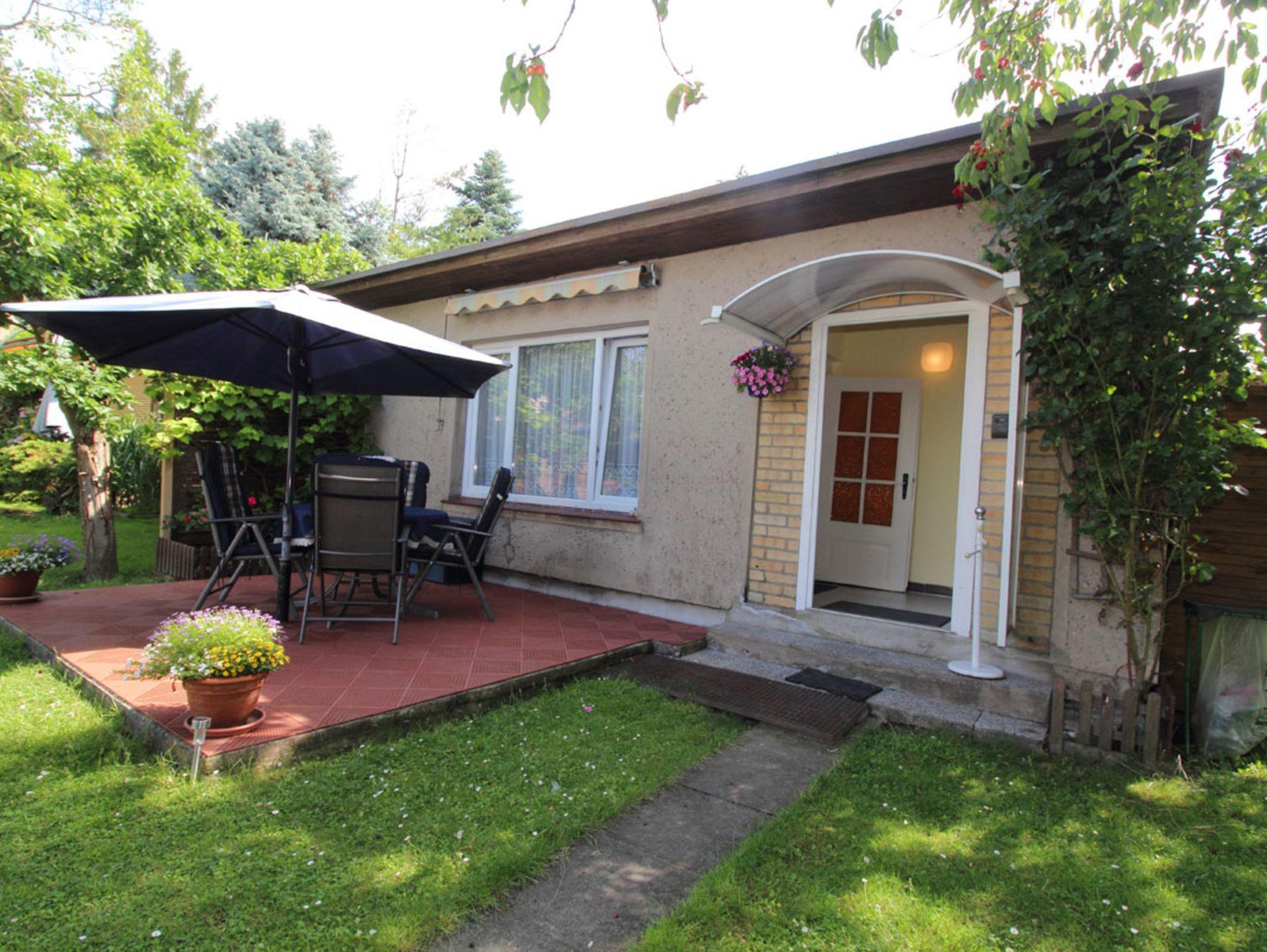 Das Gartenhaus ca. 25 m², hat einen Schlafraum mit Futonbett, 1 Wohnraum mit Doppelbettcouch,eine Küchenzeile Mikrowelle (mit Kochplatte), Kühlschrank u.Kaffeemaschine, Sitzmöglichkeit im Freien mit Campingmöbel. Ausstattung: Radio, TV, Du/WC, PKW-Stellplatz
