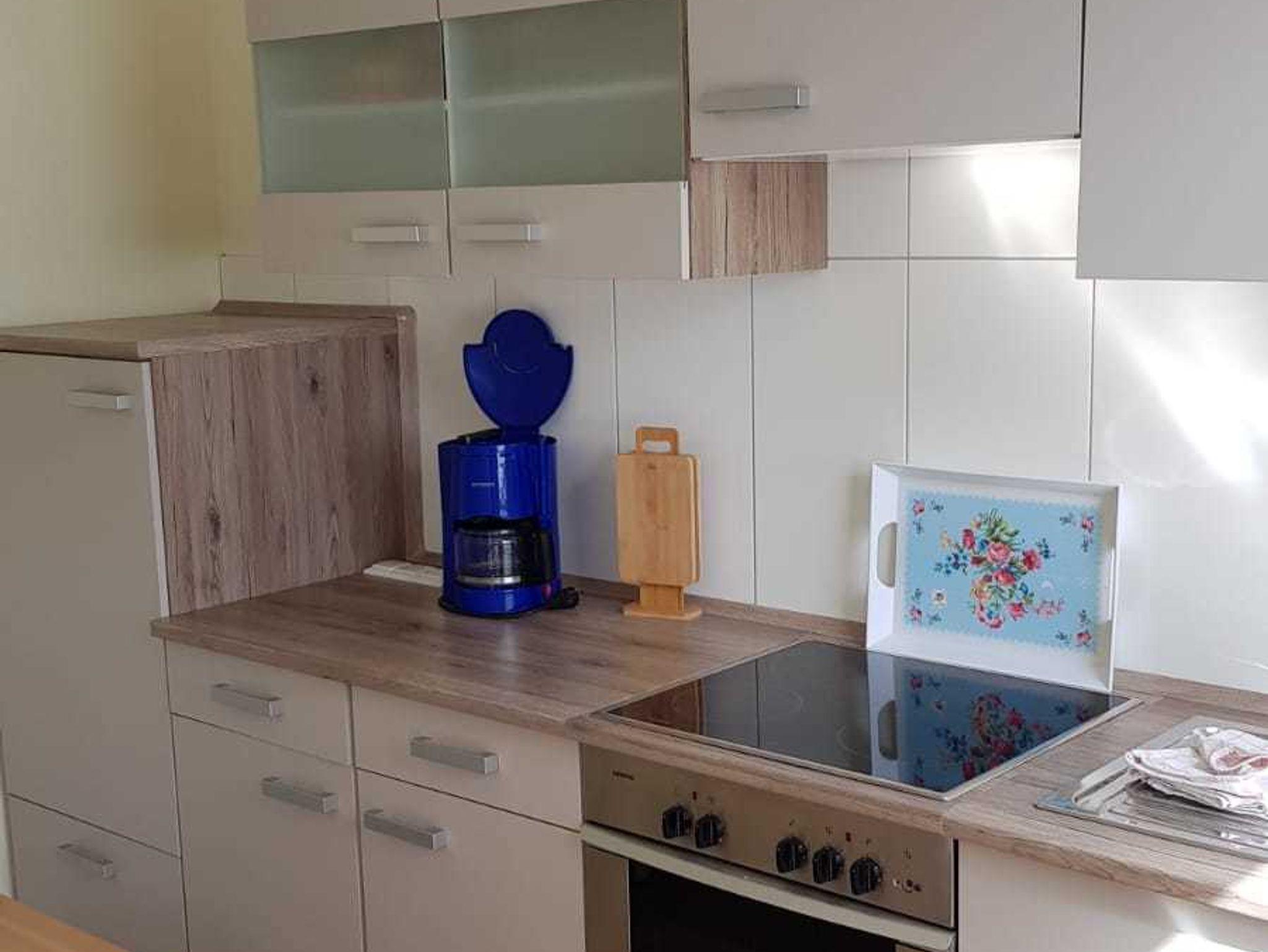 In der Küche gehören neben einer Kaffeemaschine, einem Toaster, einem Wasserkocher, einem Eierkocher, Mikrowelle, Ceranfeld mit Backofen, einem Kühlschrank auch eine gut sortierte Besteckschublade zur Ausrüstung.Geschirr,“Pött un Pann“ ebenfalls.
