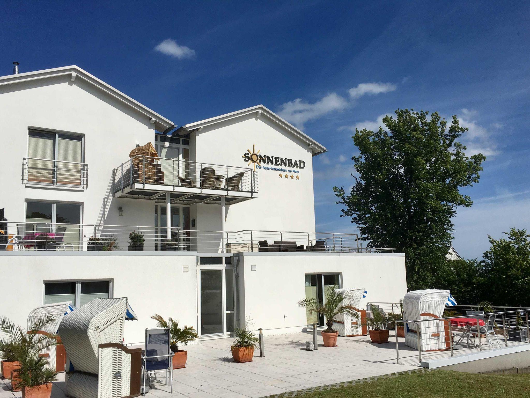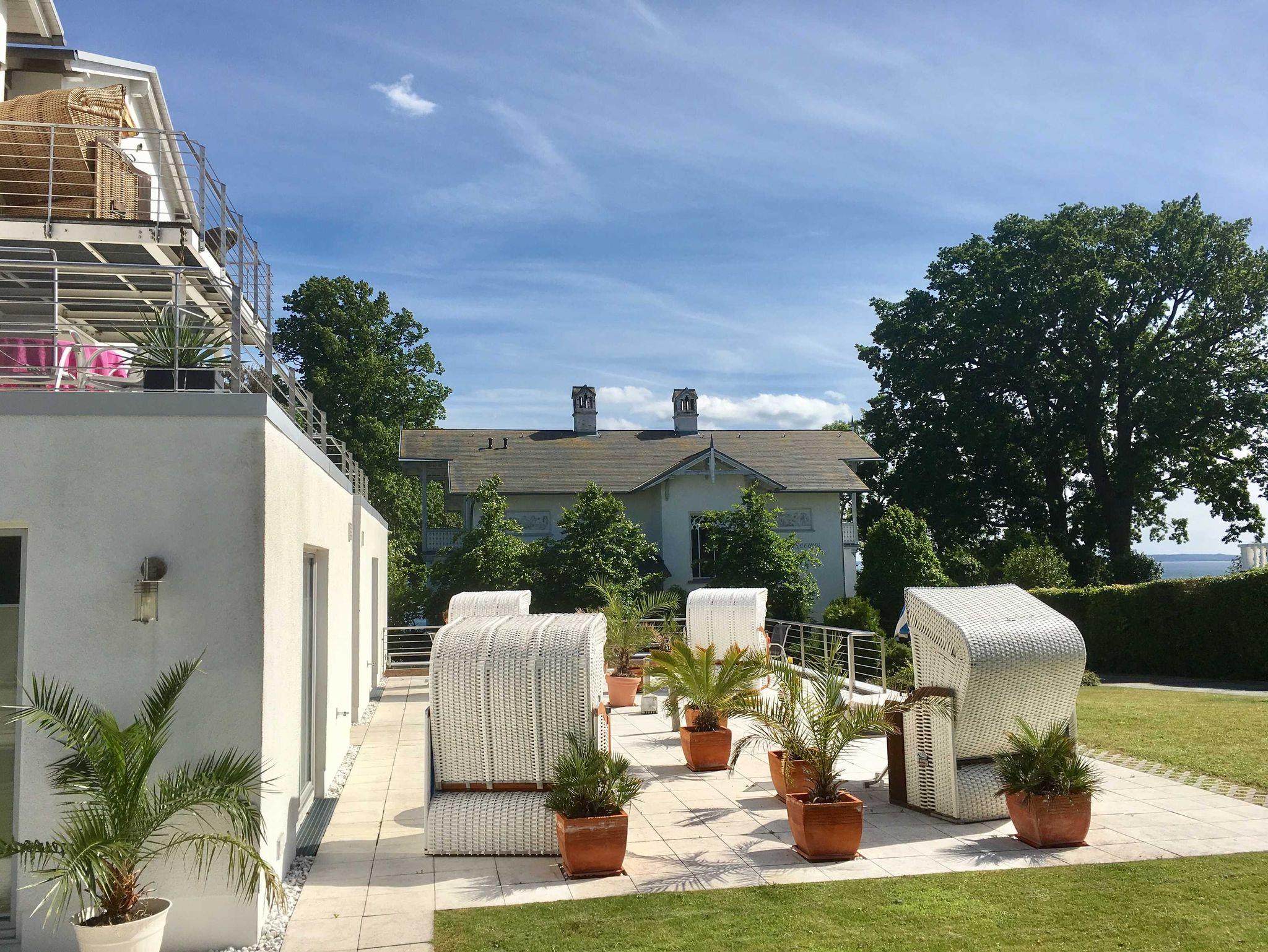 Das schöne Grundstück ist 1300 qm groß und befindet sich neben einer alten historischen Villa, die in früheren Zeiten eine Sommerresidenz eines reichen Berliner Kaufmannes war. Die 2004 eröffnete Anlage verfügt über 12 Appartements in hochwertiger Ausstattung (1- bis 2- Raum, Terrasse, kompl. eingerichtete Küche, Sat-TV, Stereoanlage, Fahrstuhl, Tiefgarage - Duplexparksystem nur für PKW´s, Ostseepanorama) und eignen sich durch die räumliche Aufteilung auch für befreundete Familien.