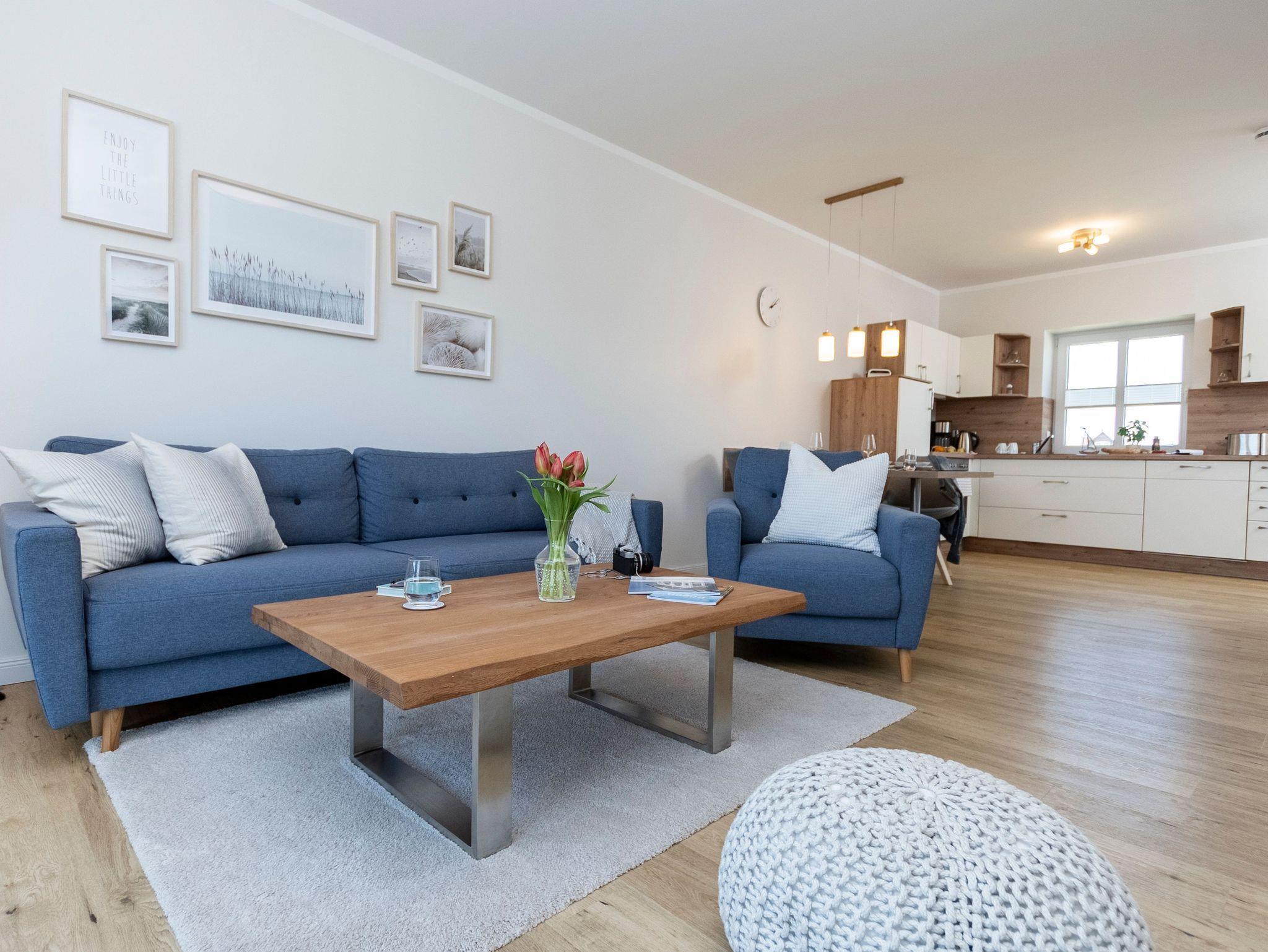 Unsere ca. 55 m² große Wohnung bietet genügend Platz für vier Personen. Verteilt auf zwei Schlafzimmer, einem großen Wohn-Essbereich mit voll ausgestatteter Küche, hoffen wir Ihnen einen Ort zum Verweilen und Entspannen bieten zu können.