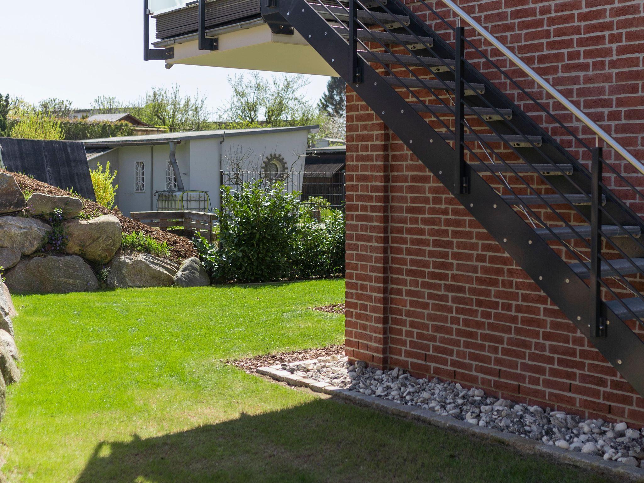 Die Wohnung befindet sich im Obergeschoss des Hauses und ist über eine Außentreppe erreichbar.