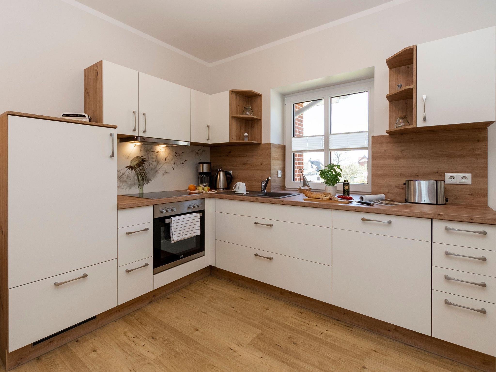 Der offen gestaltete Wohn-Kochbereich lädt zum gemütlichen Beisammensein und zu gemeinsamen Spieleabenden ein. Die Küche ist voll ausgestattet mit sämtlichen Küchengeräten, wie Geschirrspüler, Kühlschrank mit Gefriermöglichkeit, einem Herd und Ofen, einer Spüle, einem Wasserkocher und Toaster.