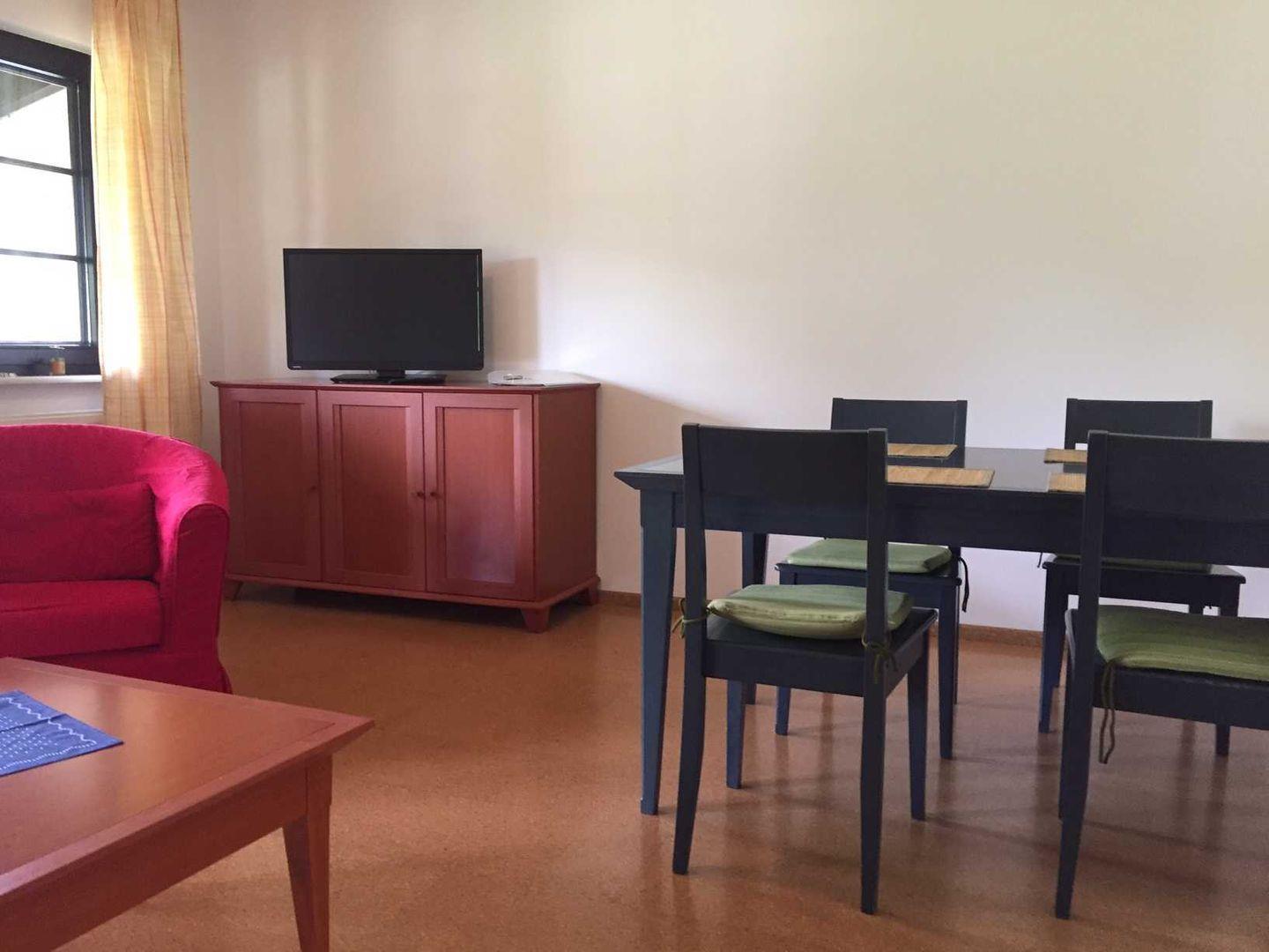 Die im Obergeschoß befindliche Nichtraucher-Ferienwohnung hat eine Grundfläche von ca. 40 m² und besteht aus einem Wohnraum mit Esstisch, Doppelbettcouch und Flachbild-TV, einem Schlafraum mit 2 Einzelbetten, einem Flur mit Miniküche (Kühlschrank, 2 Kochplatten, Kaffeemaschine, Wasserkocher, Toaster) und natürlich einem Bad mit Dusche und WC. Die gemütliche Wohnung verfügt über kostenfreies Internet sowie einen PKW-Stellplatz. Auf dem Gemeinschaftsbalkon stehen Ihnen Sitzmöglichkeiten zur Verfügung. Schauen Sie von ihr auf den schönen Innenhof und lassen Sie den Tag entspannt ausklingen!